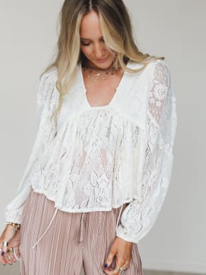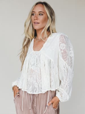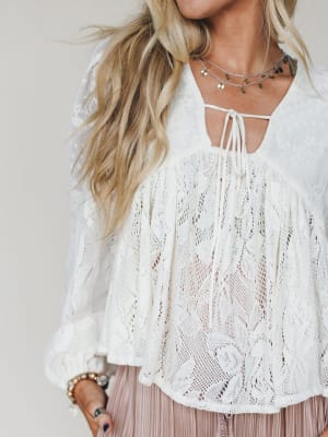 Soft, romantic, and effortlessly free-spirited—the Prairie Mirage Babydoll Top is a dreamy layering piece that captures cottagecore vibes with a modern boho twist. With its sheer floral lace and flowy silhouette, this top is all about creating a look that feels light, ethereal, and totally you.