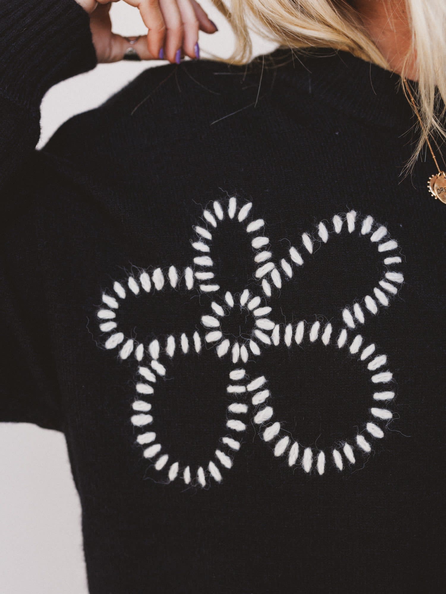 The Pressed Petal Dress is your cozy-cute answer to effortless winter styling. This sweater dress is equal parts playful and practical, featuring oversized embroidered florals that give it a handmade charm. Soft and relaxed, it’s ready to take on anything from slow mornings with coffee to nights out with boots and bold jewelry.