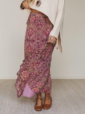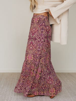 Wander freely and feel the rhythm of every moment in the Printed Daydream Maxi Skirt. With its vintage-inspired floral print and flowy silhouette, this skirt was made for twirling barefoot through golden fields or sipping coffee at your favorite weekend market.