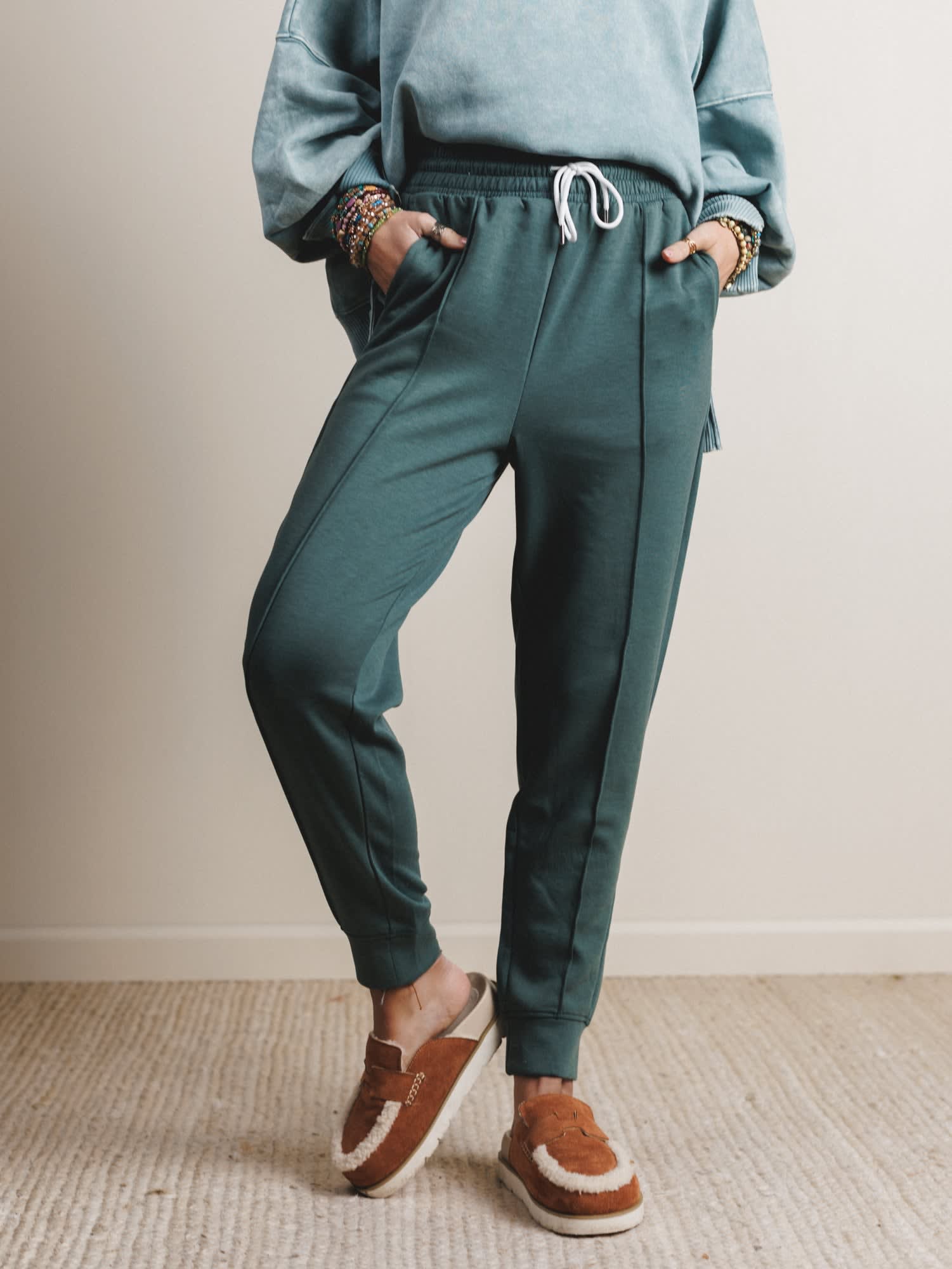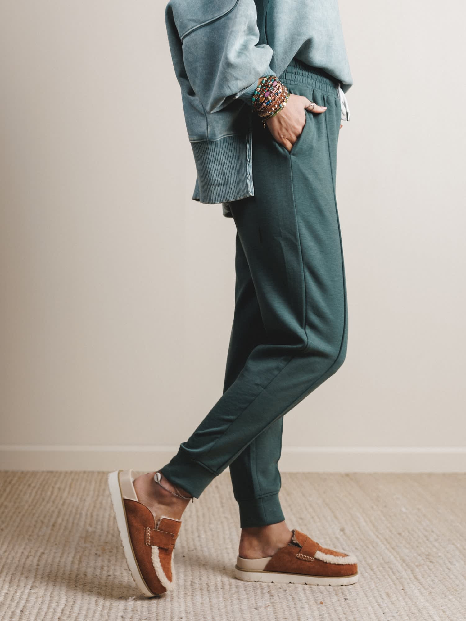 Style them with the matching pullover, fuzzy slides, and a messy bun for a relaxed look that’s still totally cute.