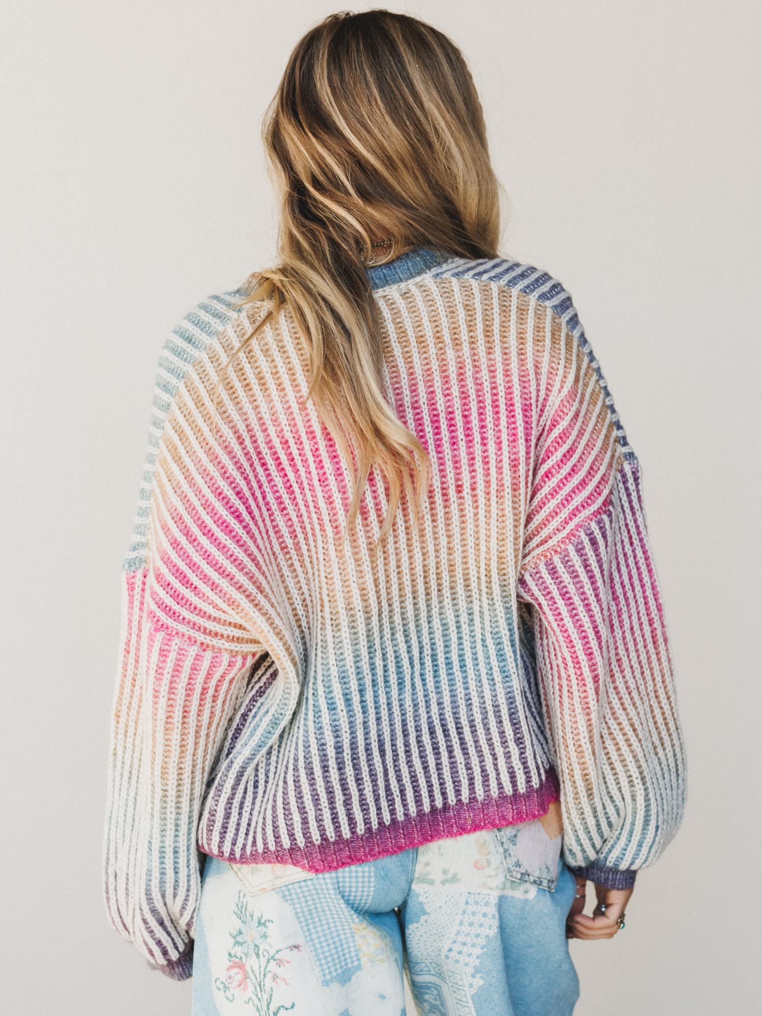 - Gorgeous ombré rainbow knit in soft, breathable yarn