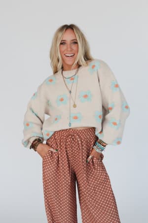 So boho and unique, you're going to love the Rainy Bloom Sweater! This sweater is perfect to throw over any of your favorite boho outfits and feel cozy and cute!