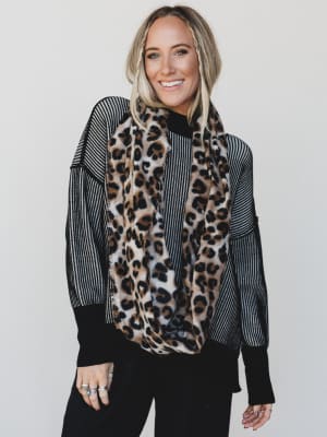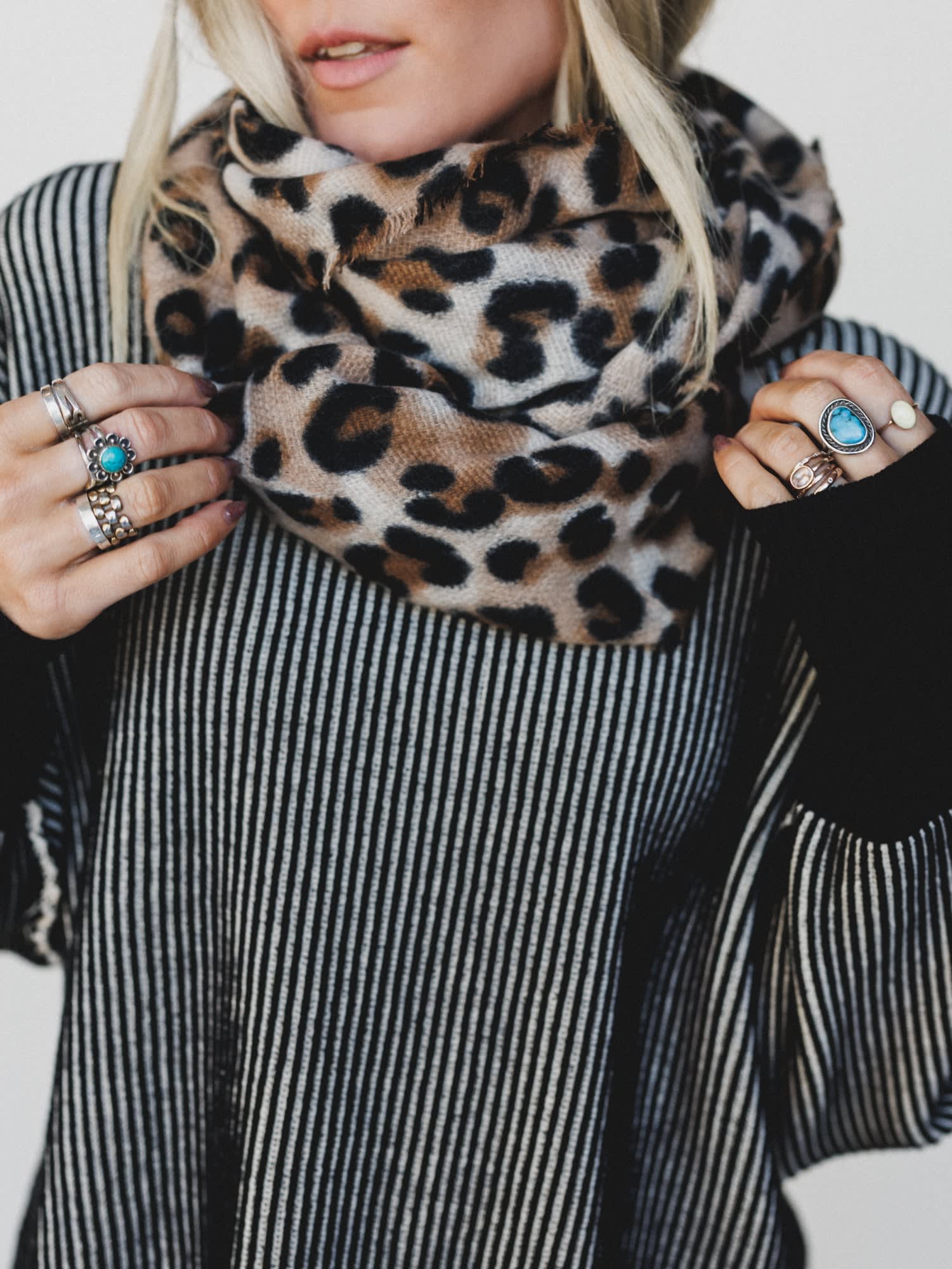 Wrap yourself in wild elegance with the Raja Leopard Print Infinity Scarf—a cozy statement that turns every outfit into a fierce favorite. Whether you're layering it over a neutral sweater or adding it to a bold all-black look, this scarf brings serious style with zero effort.