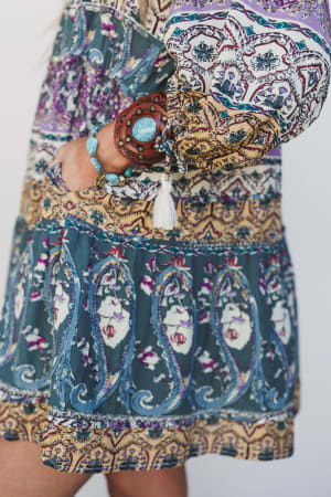 • Bloom into your best self in this paisley print dress made for twirling under summer skies. Feminine, flowy, and full of charm.
