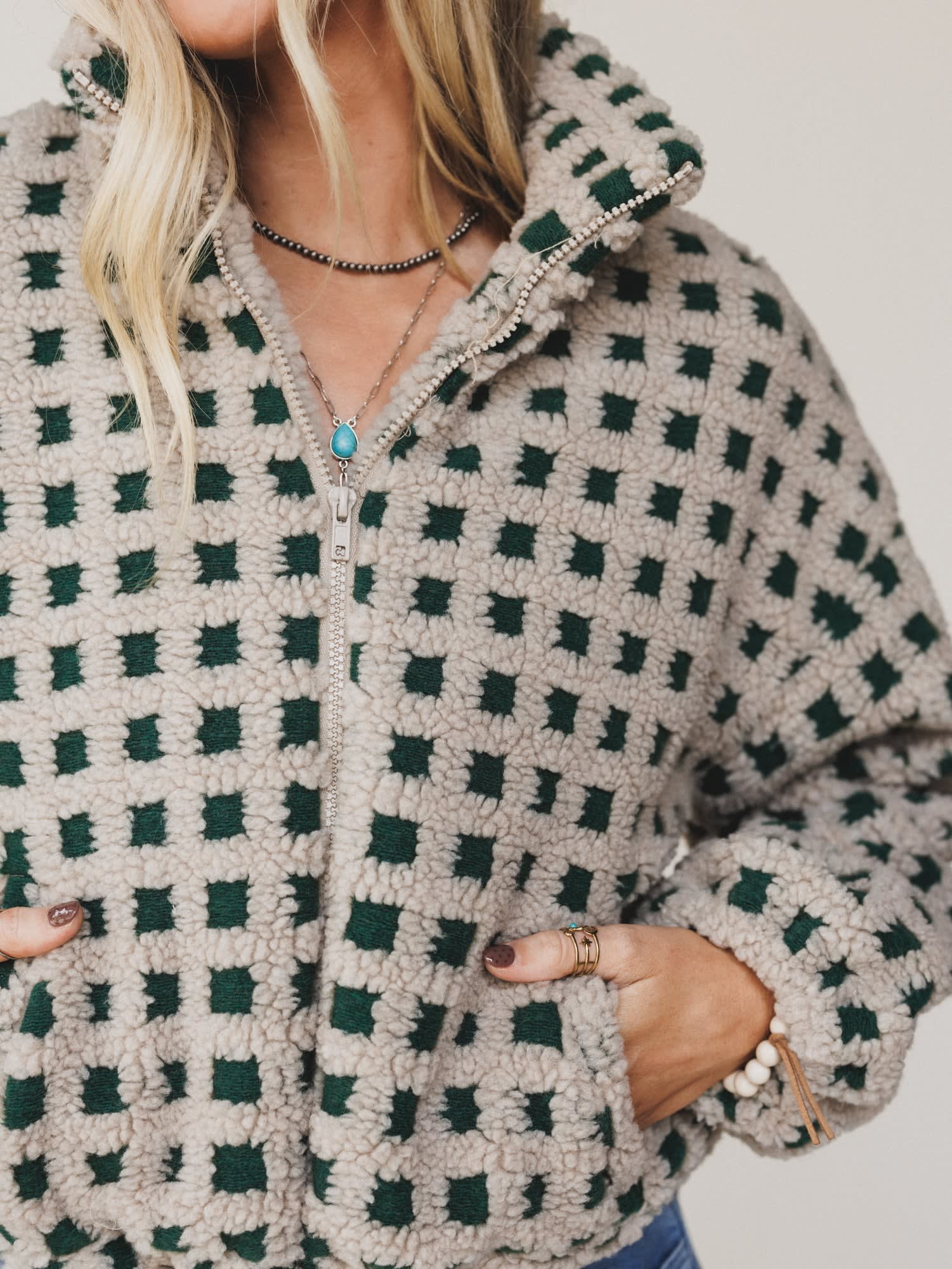 Cold weather? You're already ready. The Ready Set Go Checkered Jacket is made for coffee runs, cozy strolls, and all your layered-up adventures. Snuggle up in this statement sherpa and let the good vibes roll.