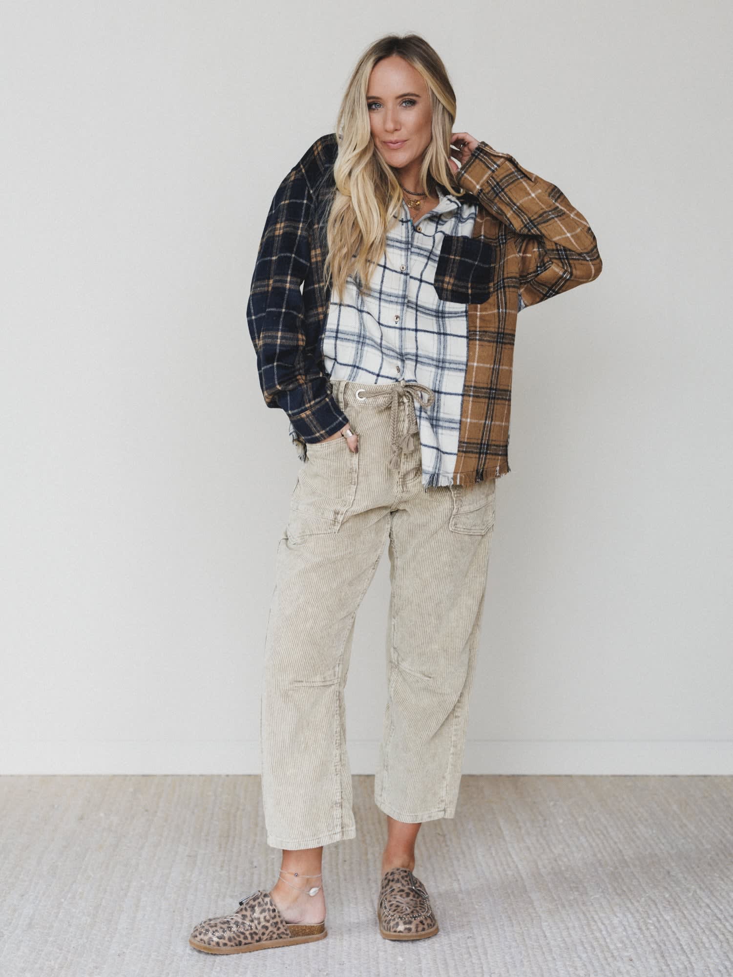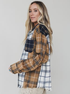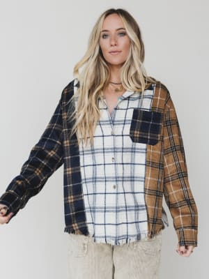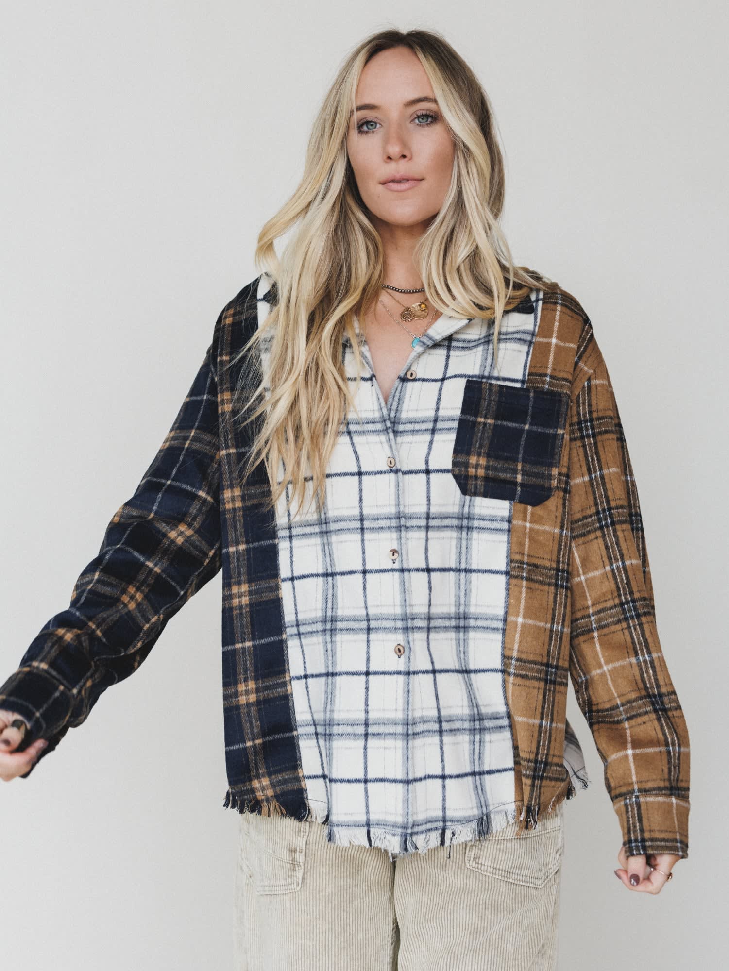 A little rugged, a little rebellious—the Redwood Pass Flannel Top is the ultimate cozy essential for your layered looks. With a bold patchwork plaid and distressed details, it’s got that lived-in vibe you’ll keep reaching for season after season.