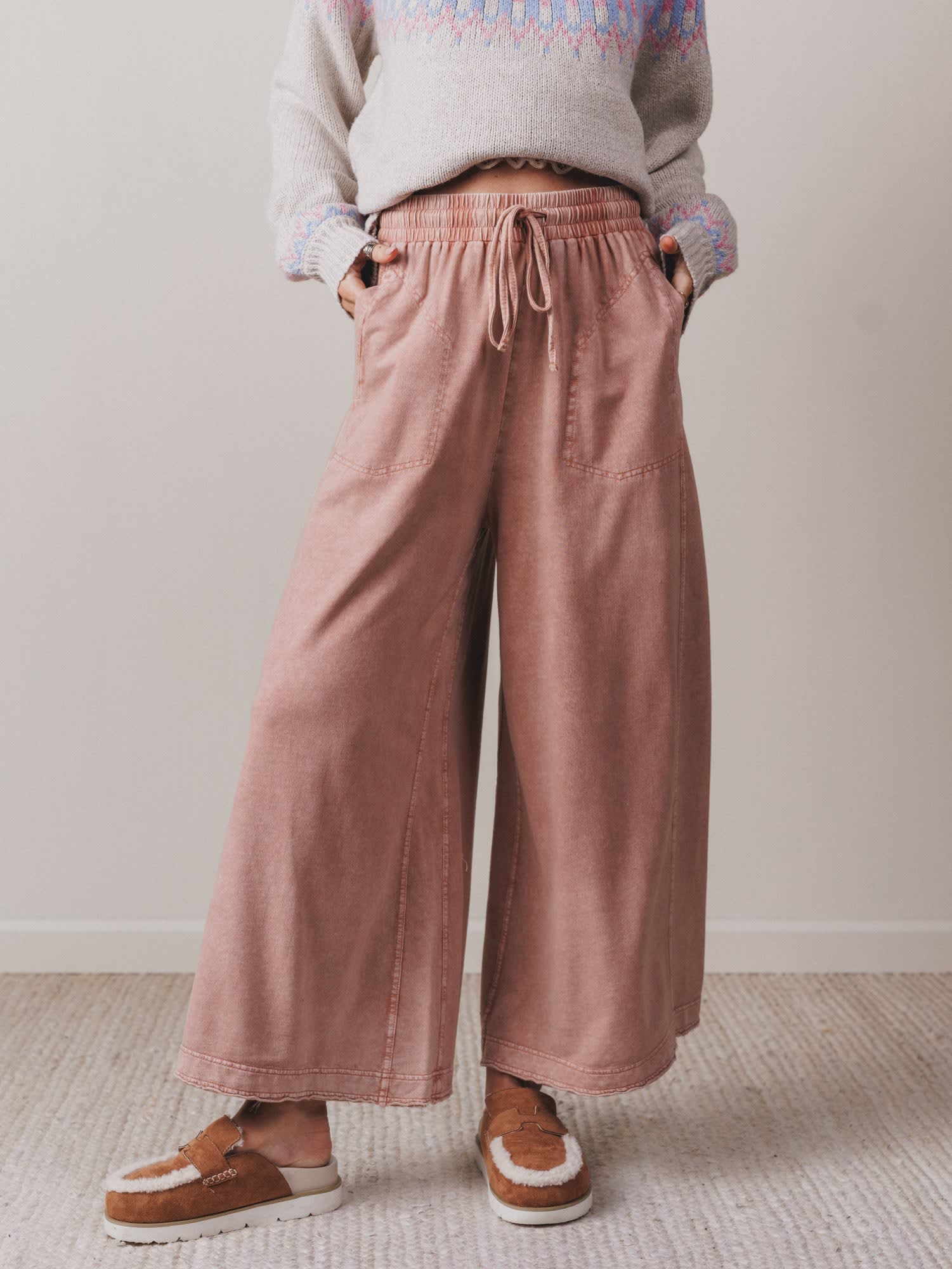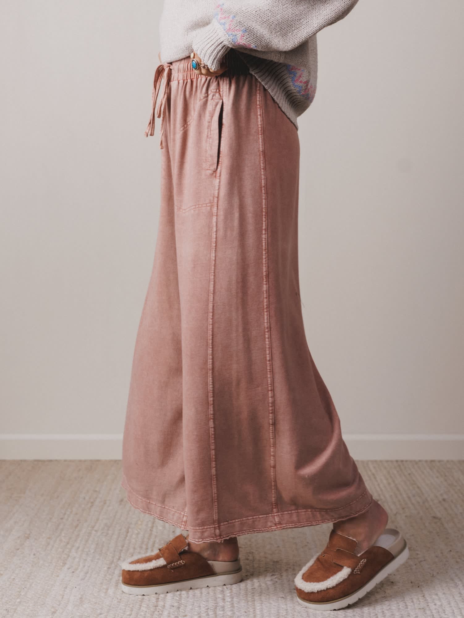 - Wide leg silhouette with flowy movement