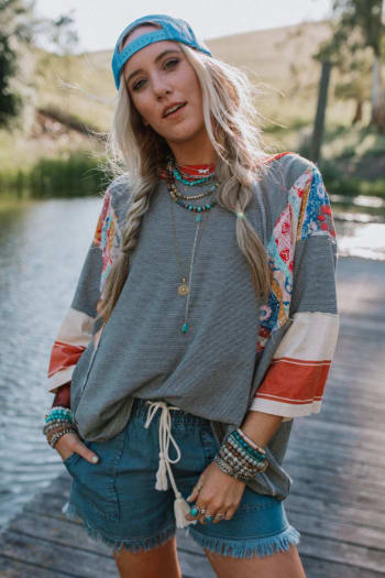 Cute pants that are fun, funky, and boho-comfy too?! “Yes” to a wide-leg silhouette with a draw-string waist in soft French Terry. Vintage fade make these a casual favorite while visible seams, cropped raw-edges, and outline pockets add to the relaxed vibe.
