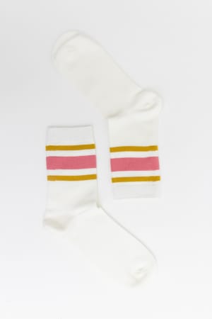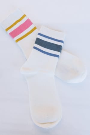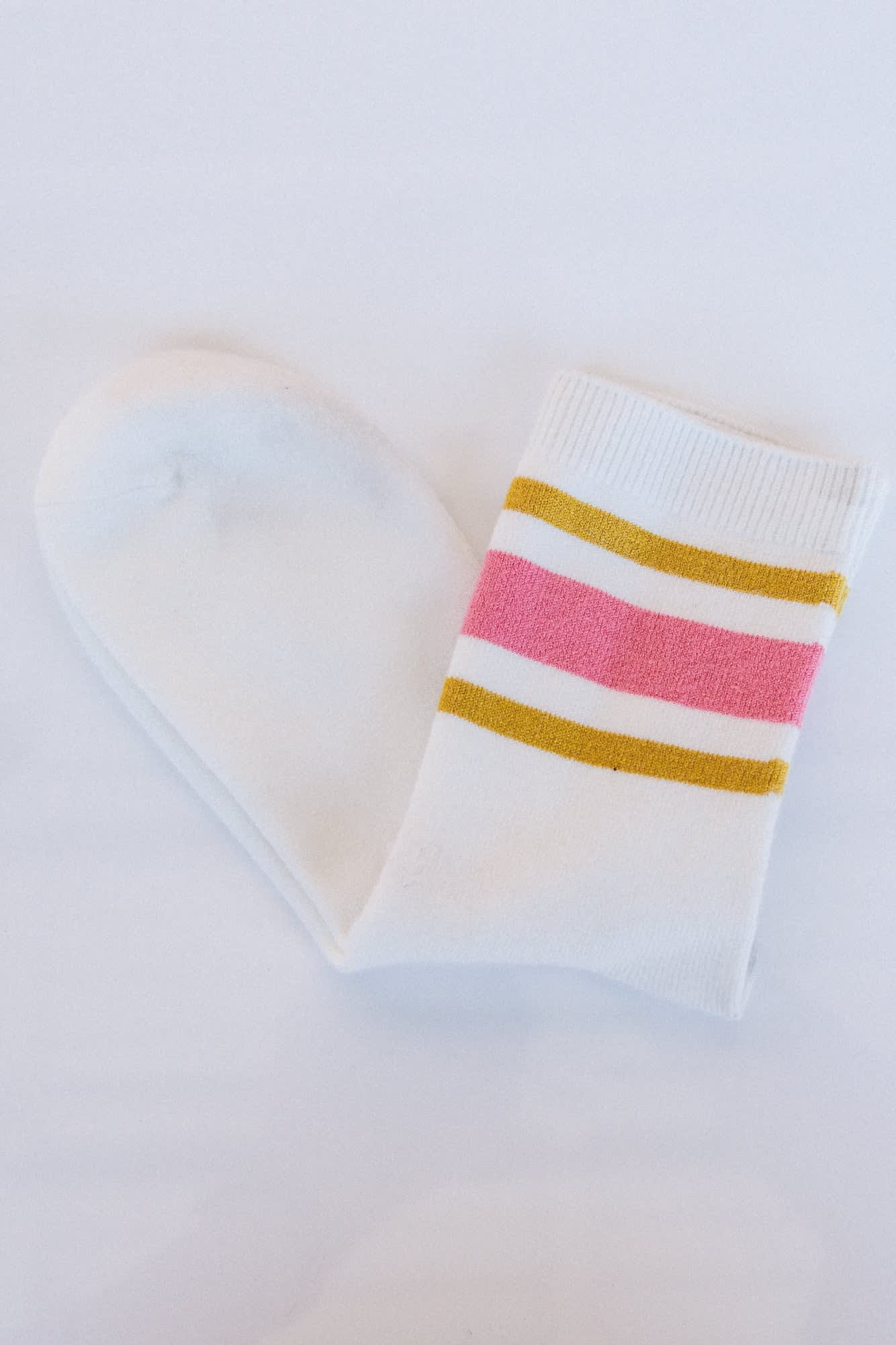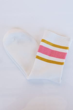 Add a summer camp vibe to your looks this season with these retro striped socks.Β