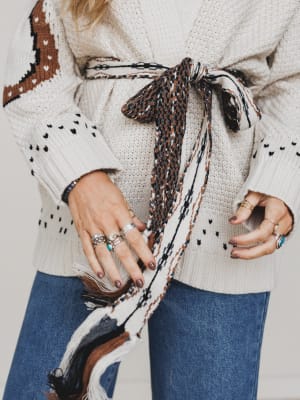 A cardigan with a whole lotta character. The Retrofolk Cardigan brings western soul and cozy charm together with playful details that tell a story—perfect for layering on a crisp fall day.