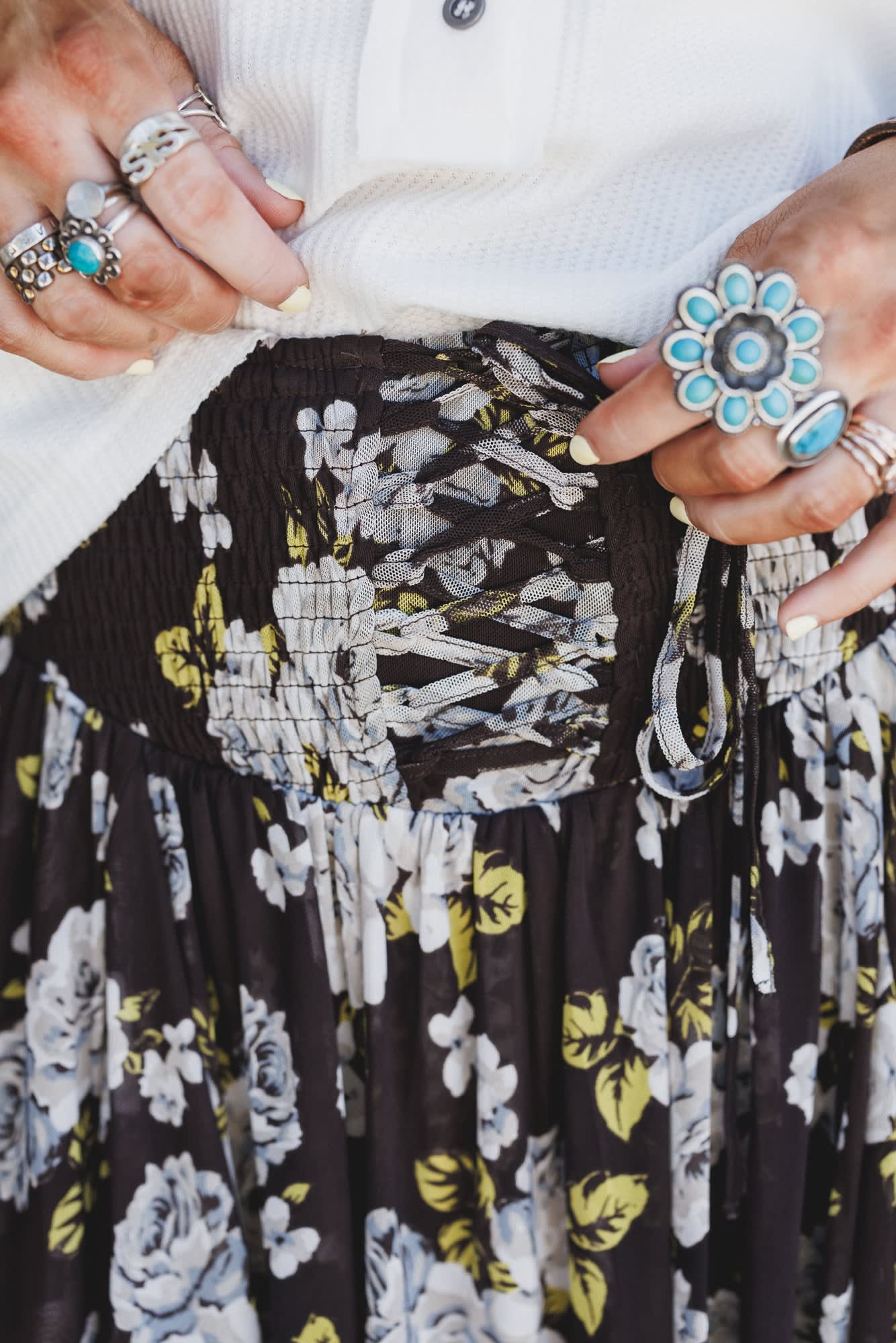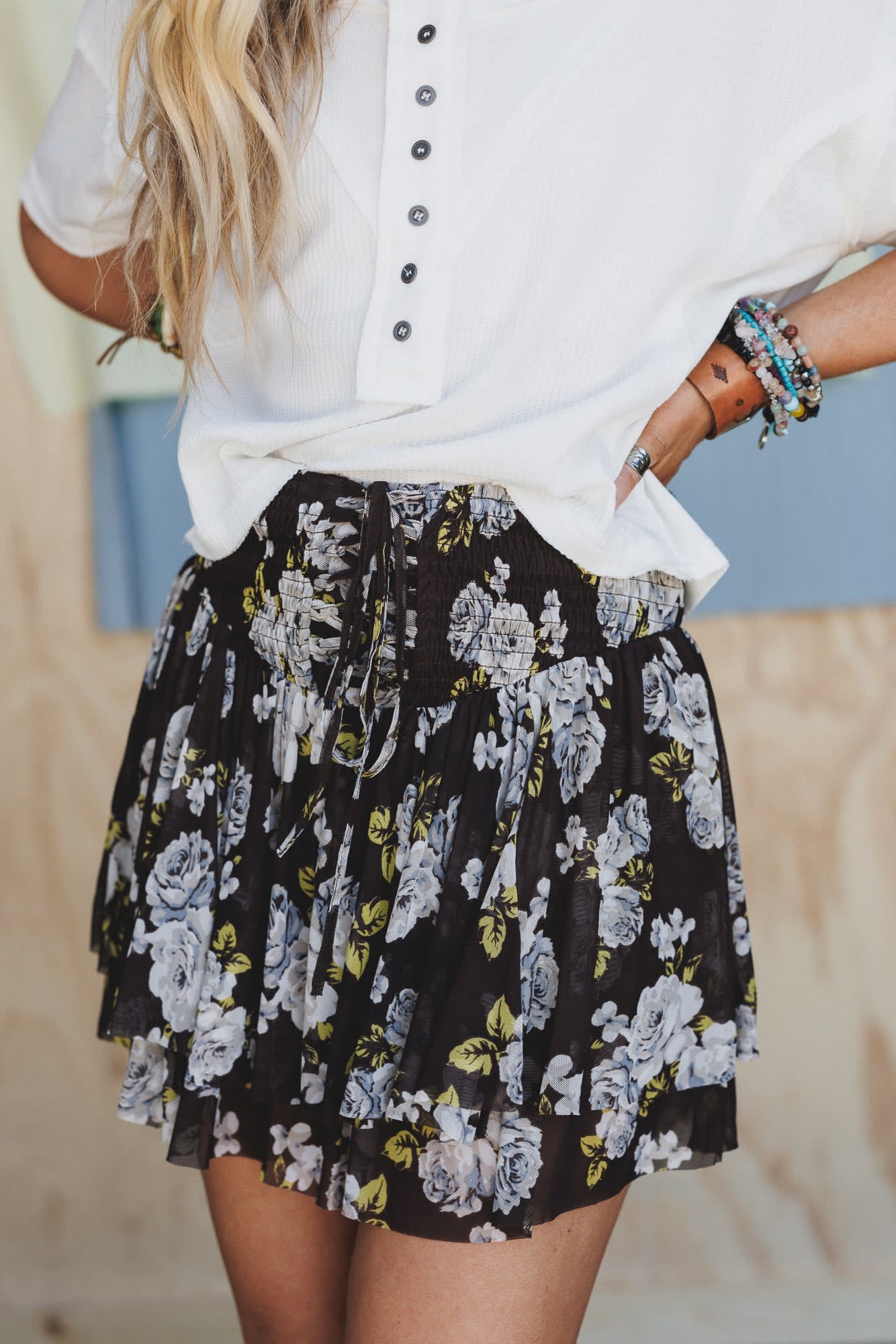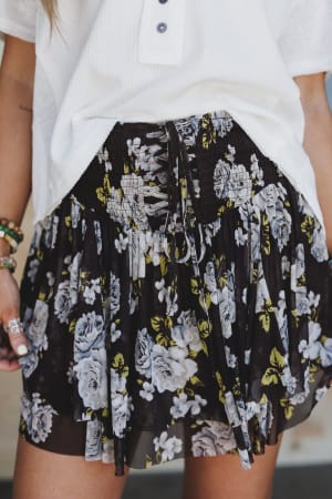 This flirty floral mini skirt pairs perfectly with sheer lace tops for an ultra femme look.Β