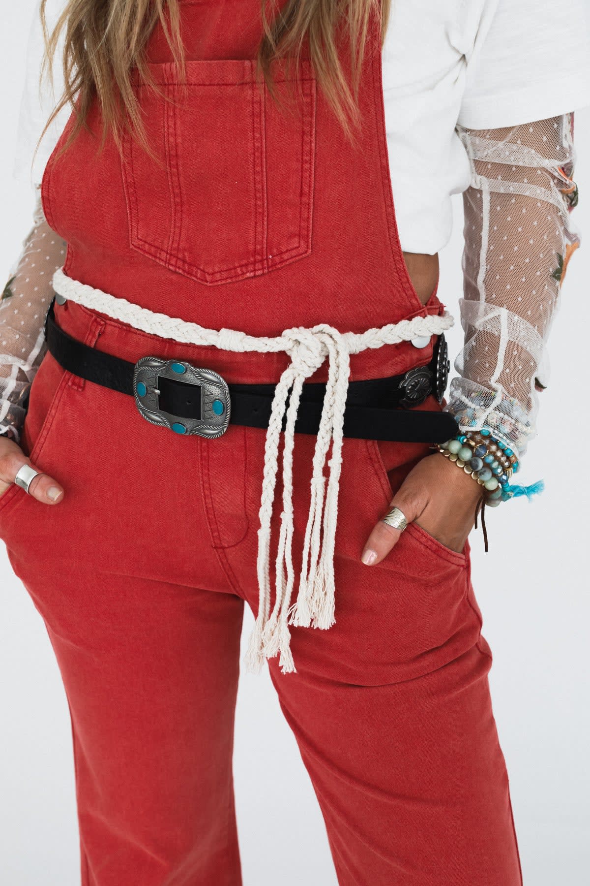 Add a natural touch to any casual look with this rustic braided belt in rich ivory.