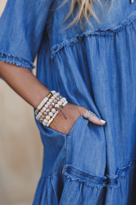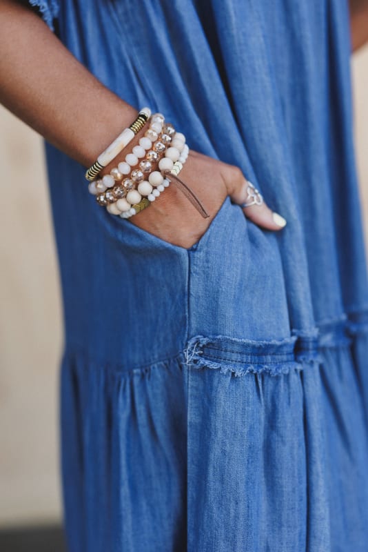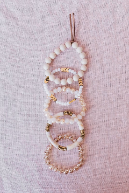 These neutral bracelets are a great accessory for your more colorful outfits this summer.