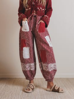 - Jeanie Patchwork Pant: With a relaxed fit, mixed-texture patches, and comfy cinched ankles, these pants are equal parts artsy and cozy.