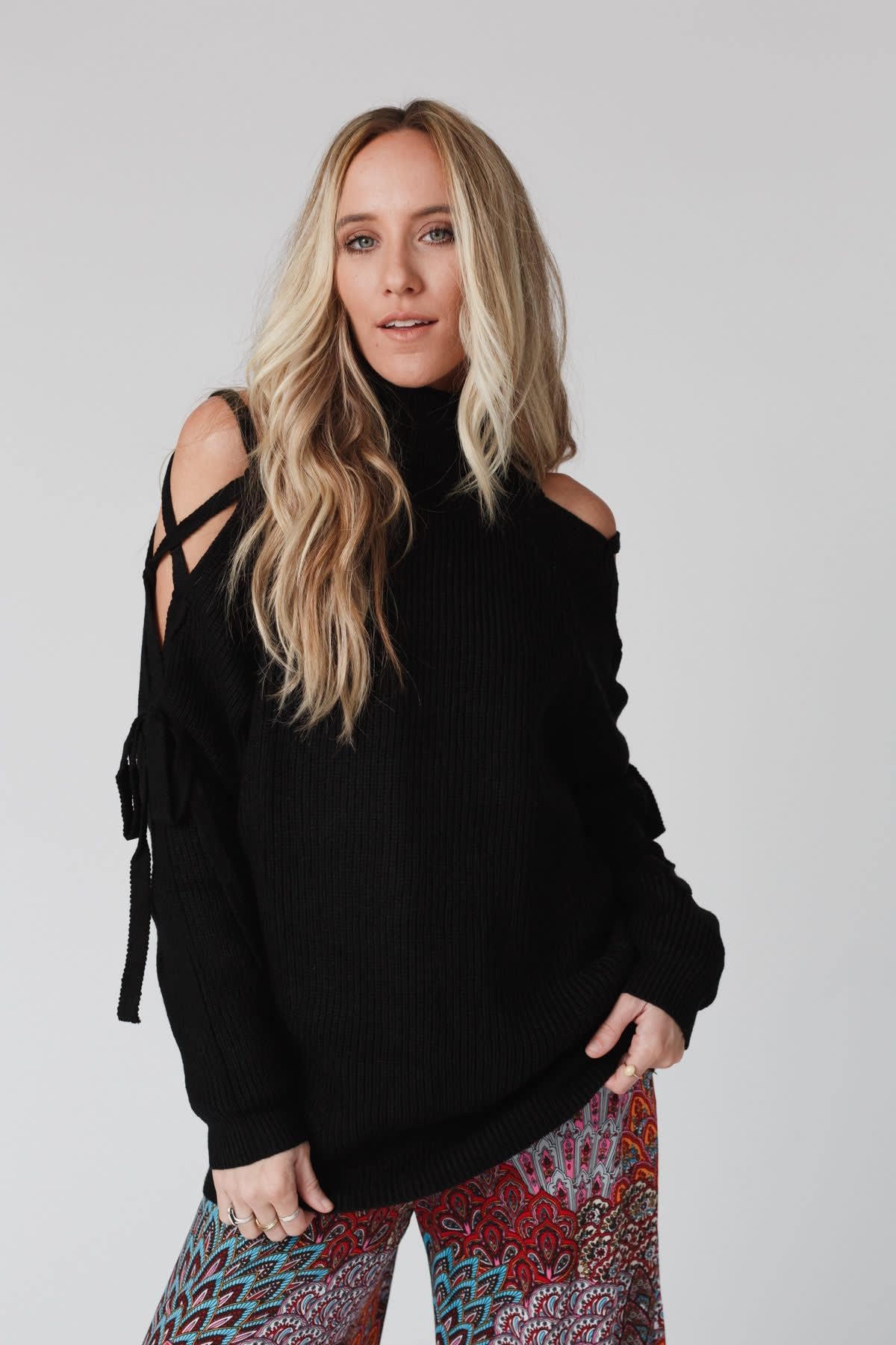 Introducing the Roxy Criss Cross Tie Shoulder Sweater - perfect to pair with any of your favorite boho bottoms!