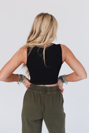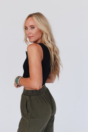A true boho closet essential is the Rue Ribbed Henley Brami, perfect to wear on its own or as a layering piece!