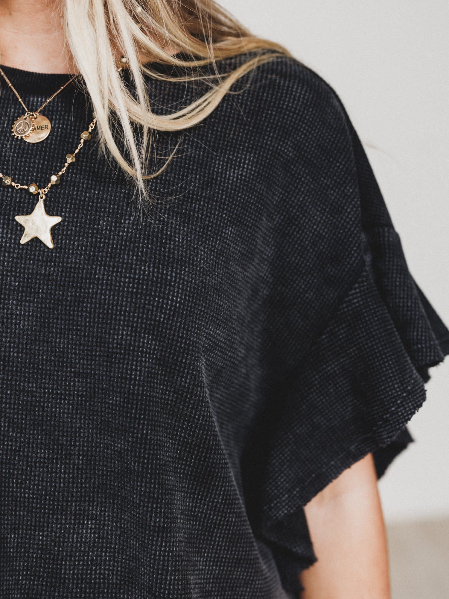 - Lightweight waffle knit with a cozy, textured feel