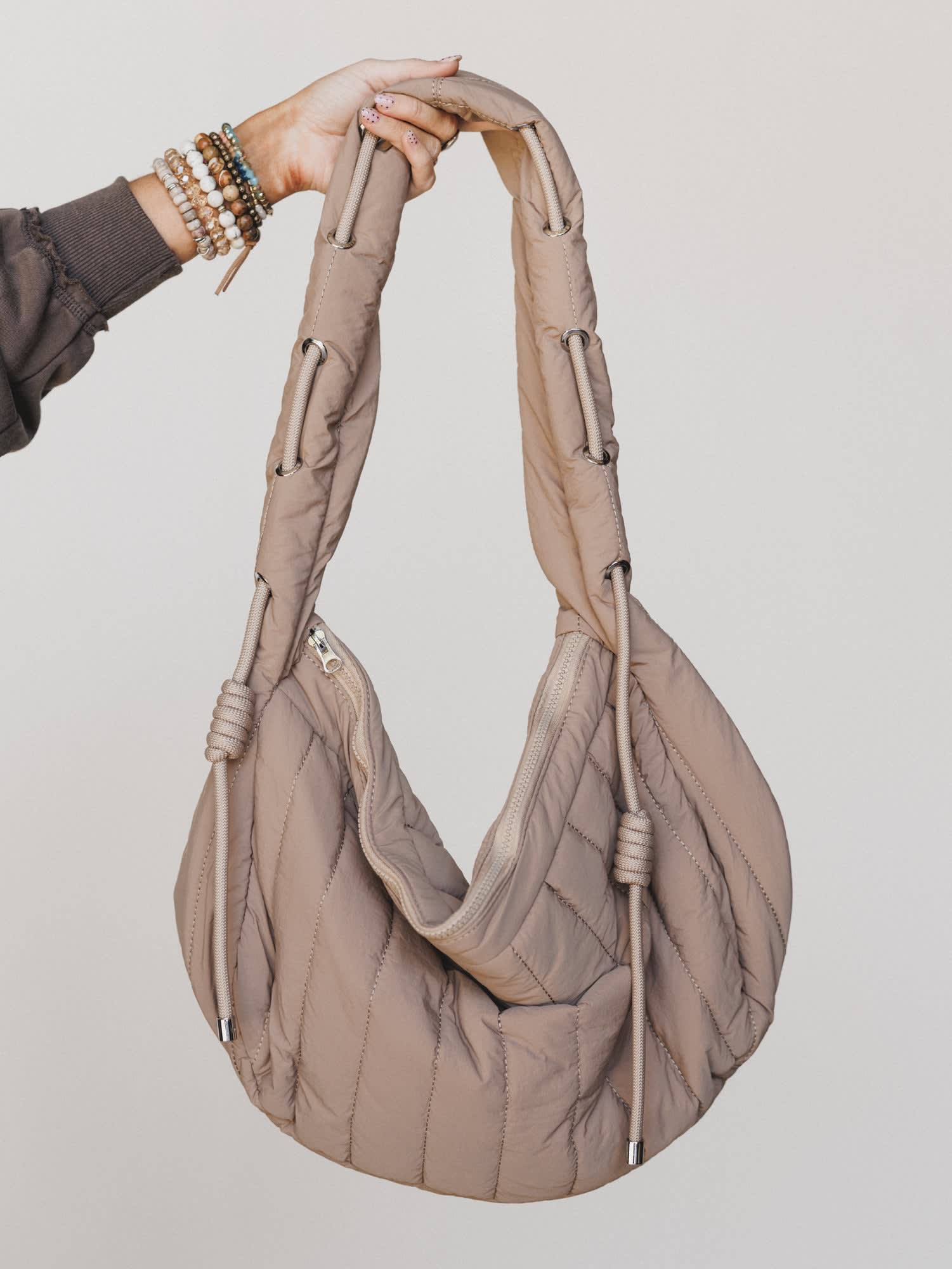 • Quilted shoulder bag with zip closure and roomy interior keeps your essentials close in true boho style
