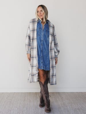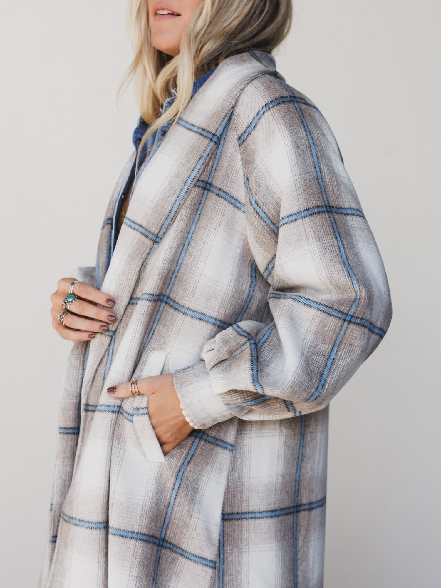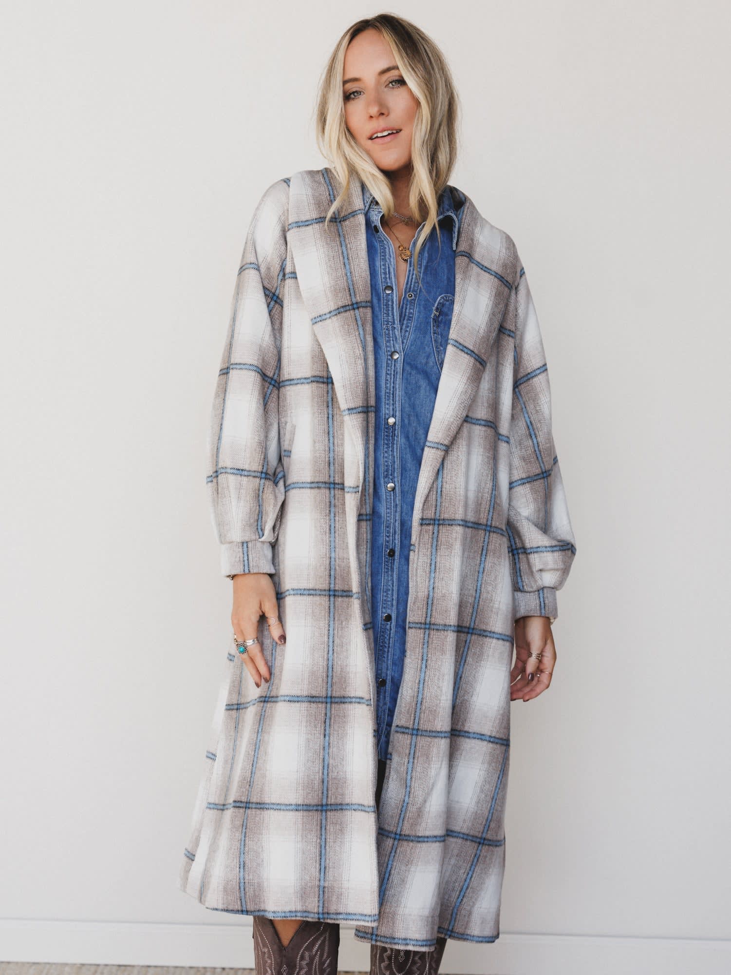 For fireside evenings or fall market strolls, the Rustic Gatherings Plaid Coat is your go-to for layering up in timeless, cozy style. With its soft tones and oversized fit, it's made for snuggling through the season.