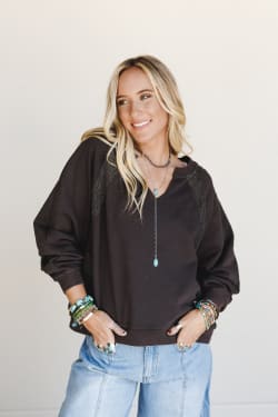 Cozy meets romantic in the Rustic Lace Dream Trim Top — made for slow days, soft layers, and just a hint of edge.
