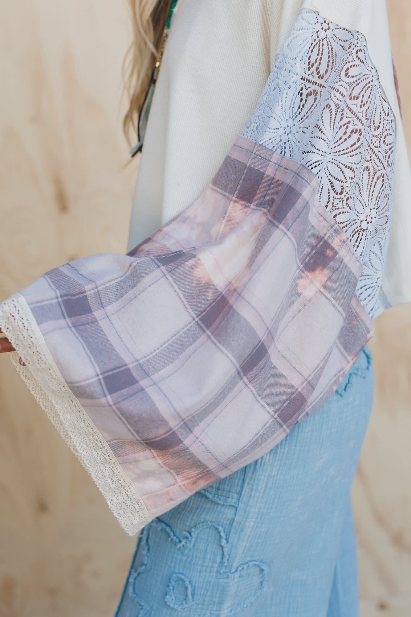 Live Easy Plaid Peace Top (Sized)