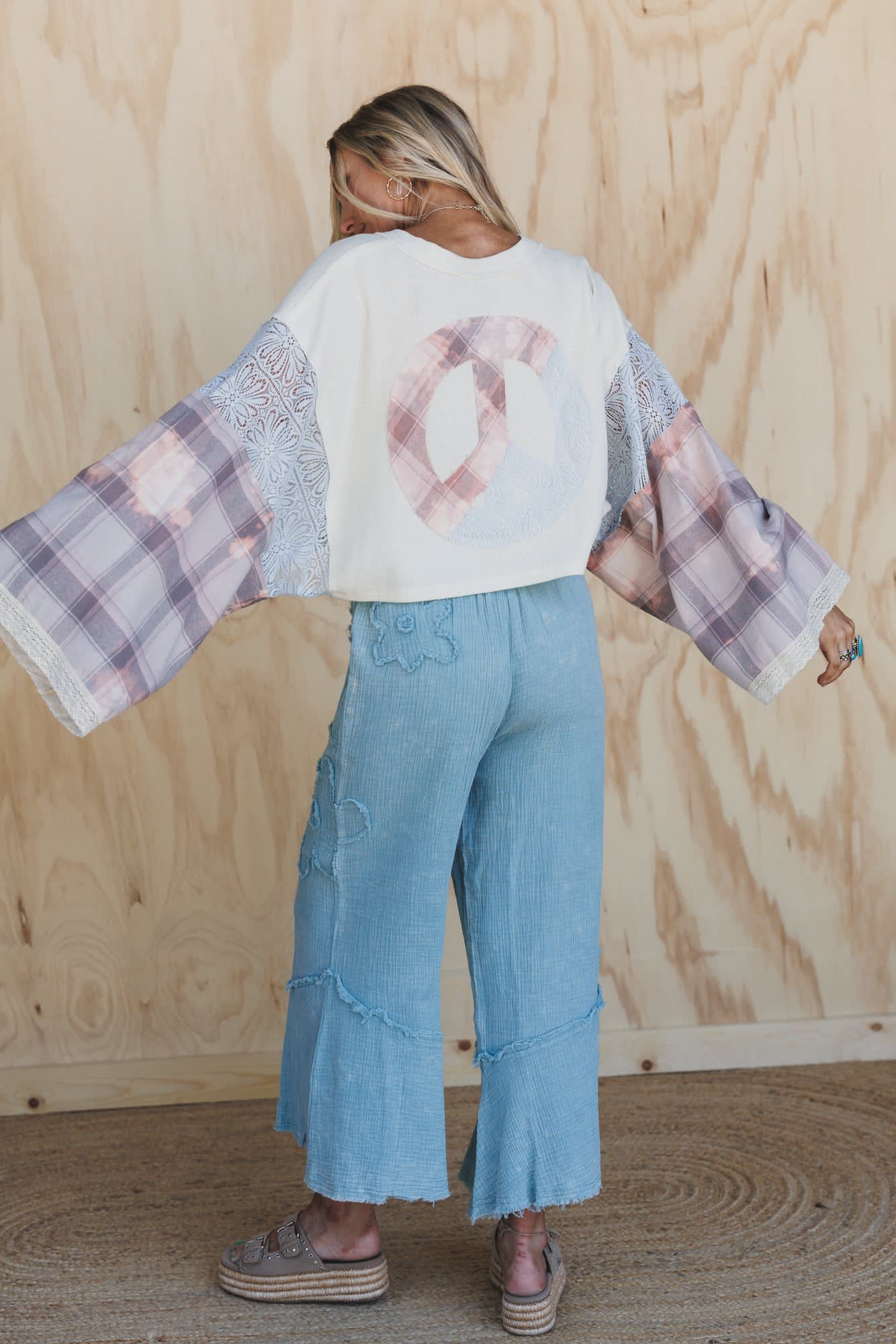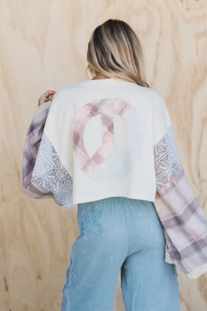 - Peace sign patchwork pullover