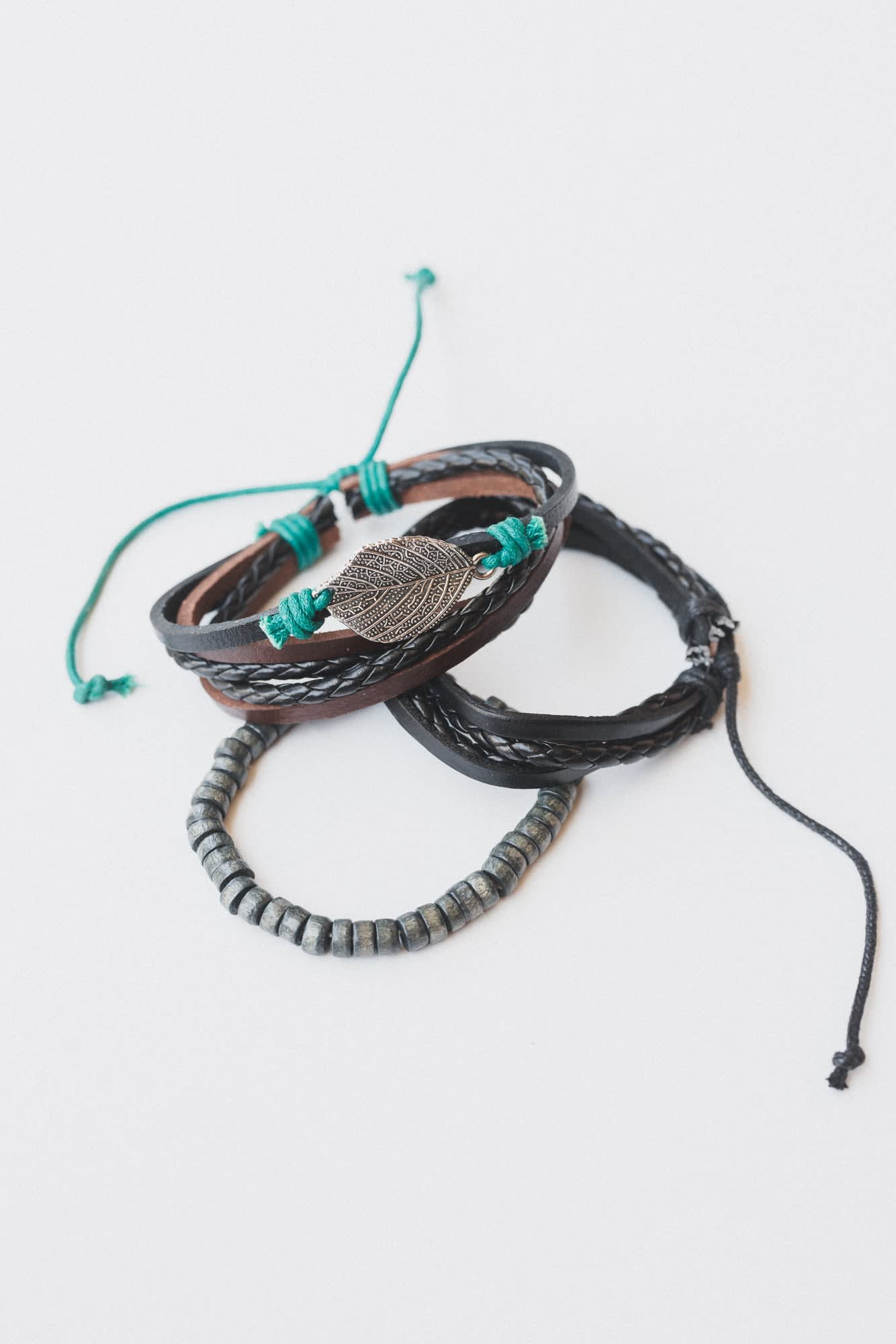 Wear this leather bracelet set with a graphic tee and jeans for a cool casual look.