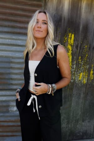 Pair this simple, flowy vest with a cami or long sleeve top for an effortless layered look.