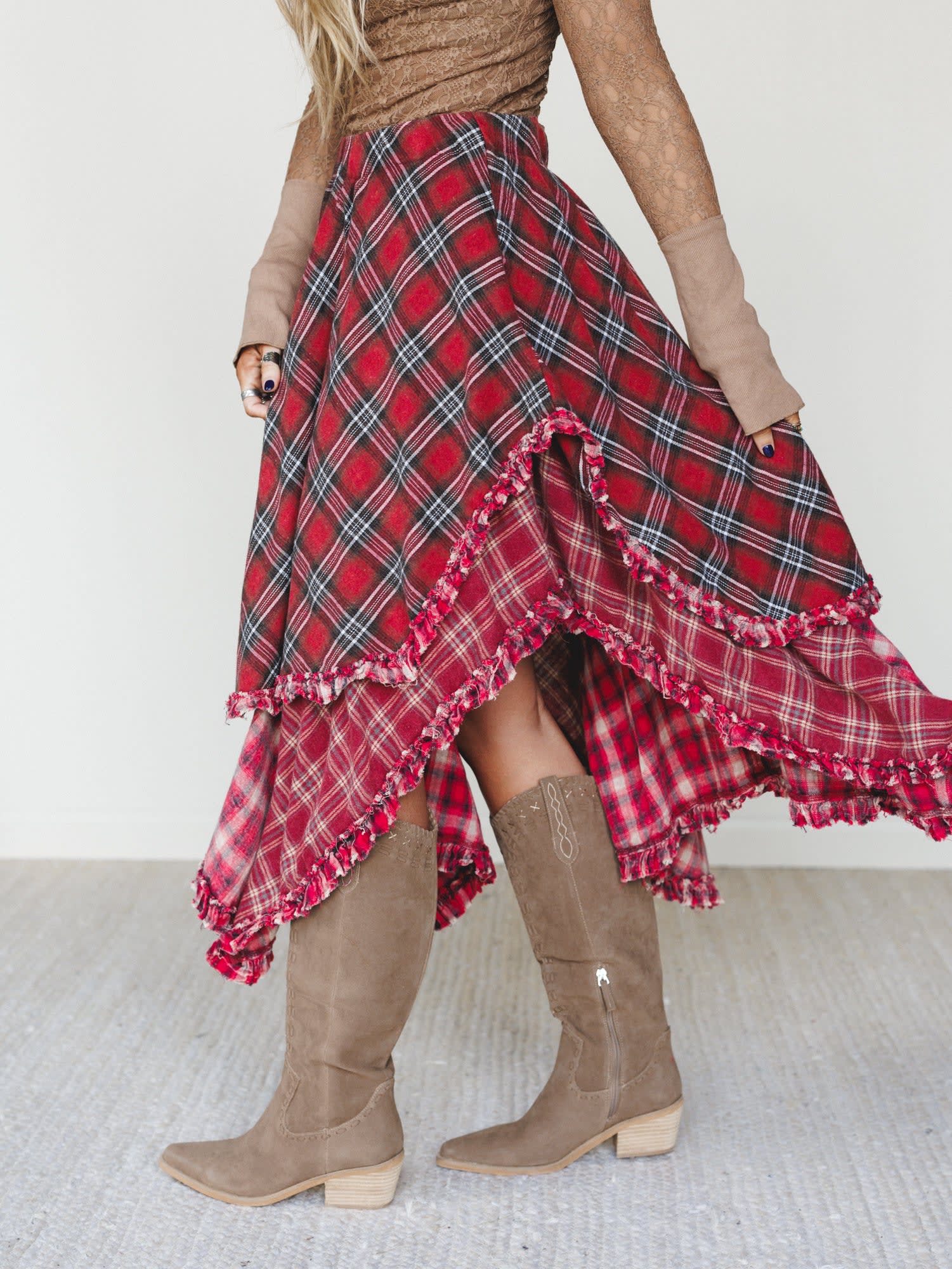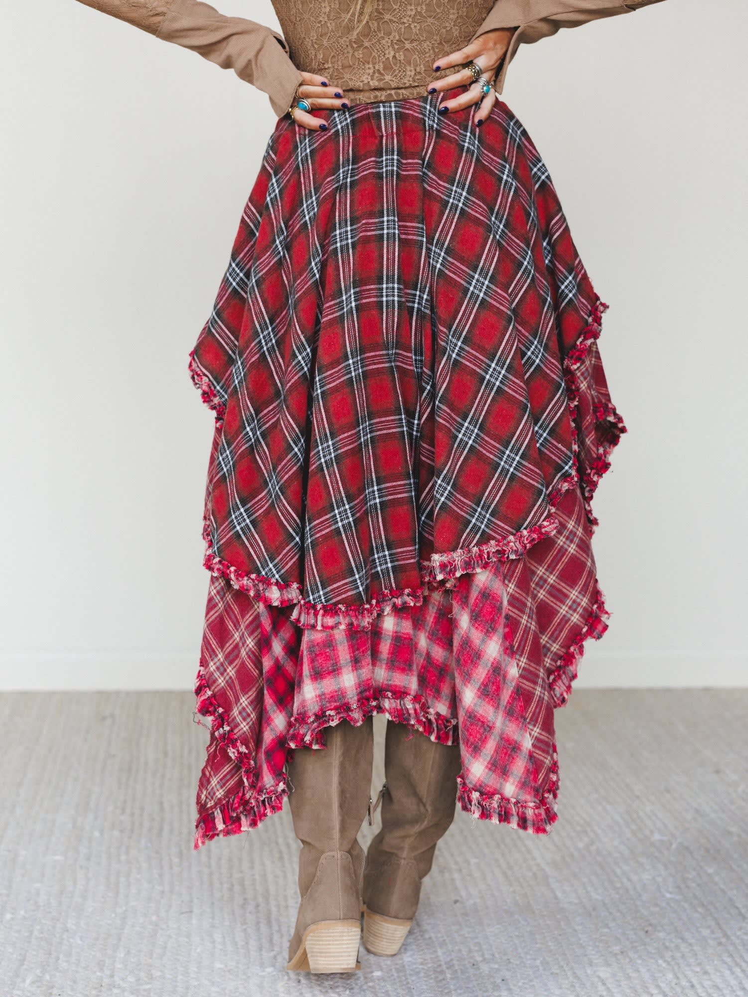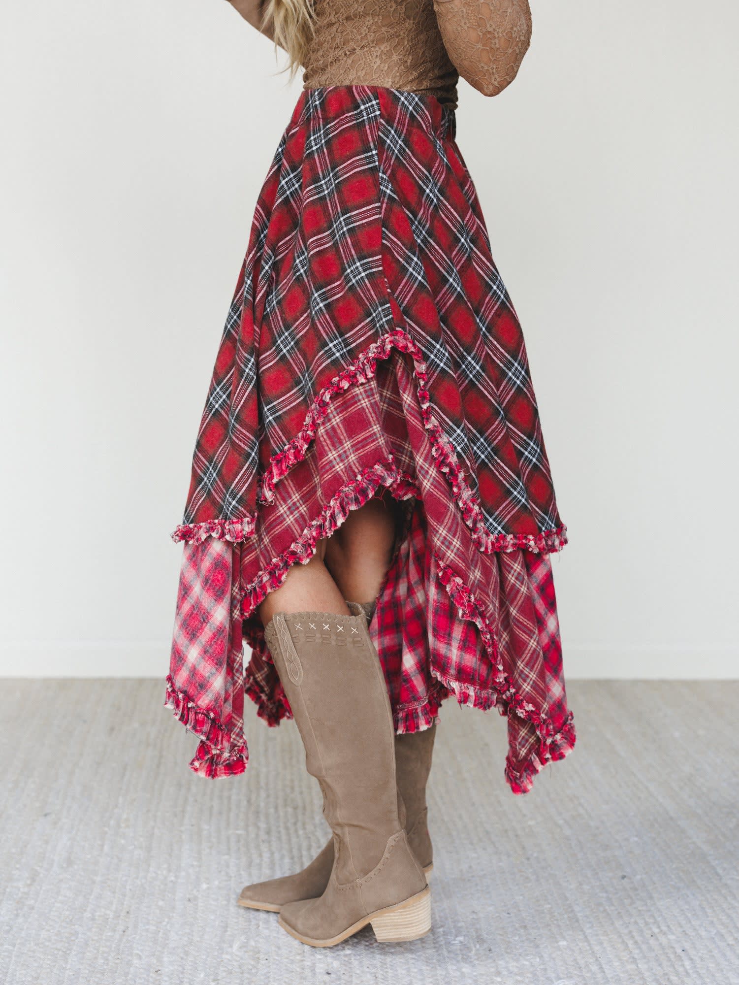 Spin, sway, and steal the spotlight in the Sand Dancer Plaid Skirt. With its layered ruffles and flowing plaid panels, this skirt was made for movement and magic.