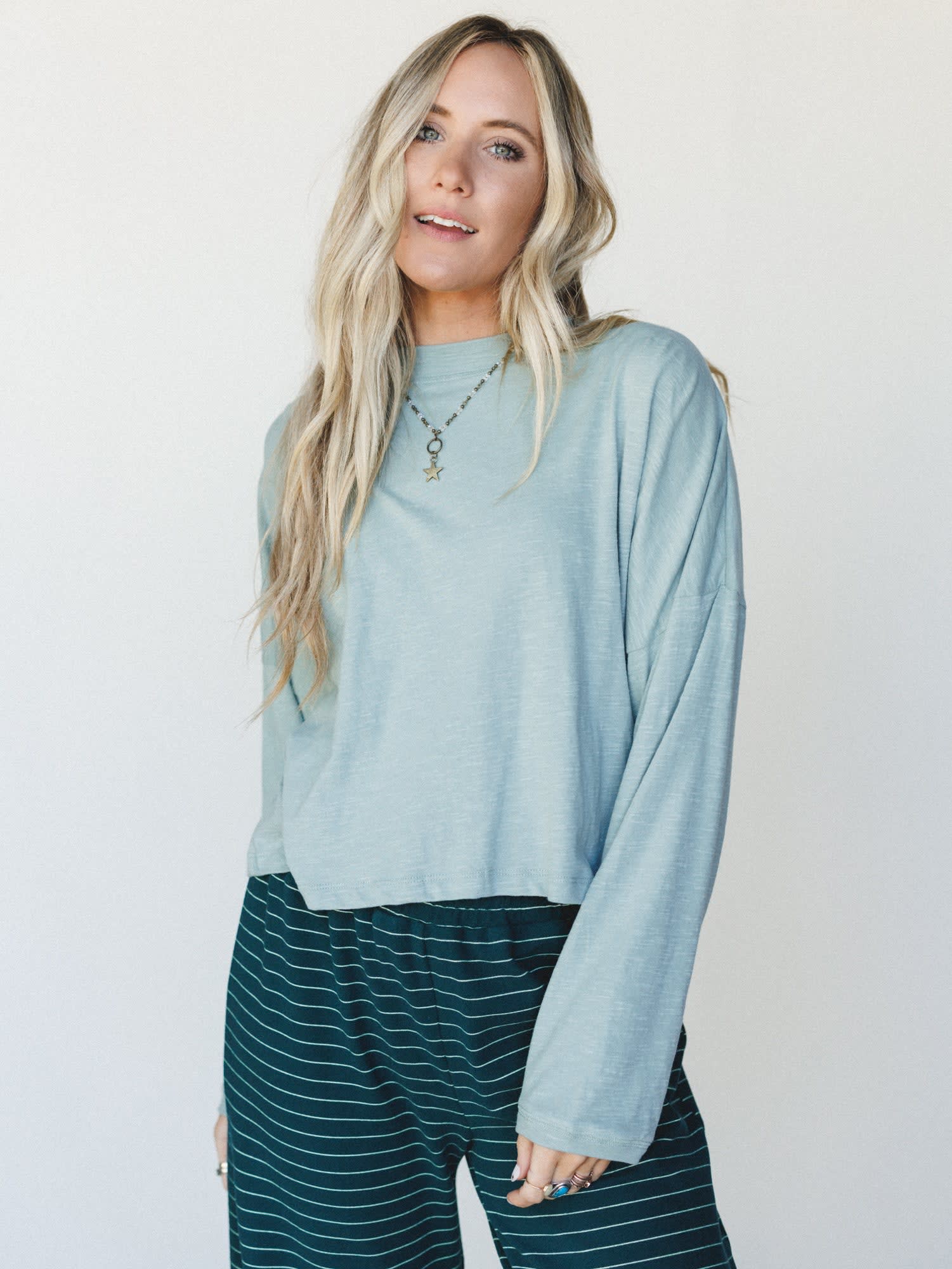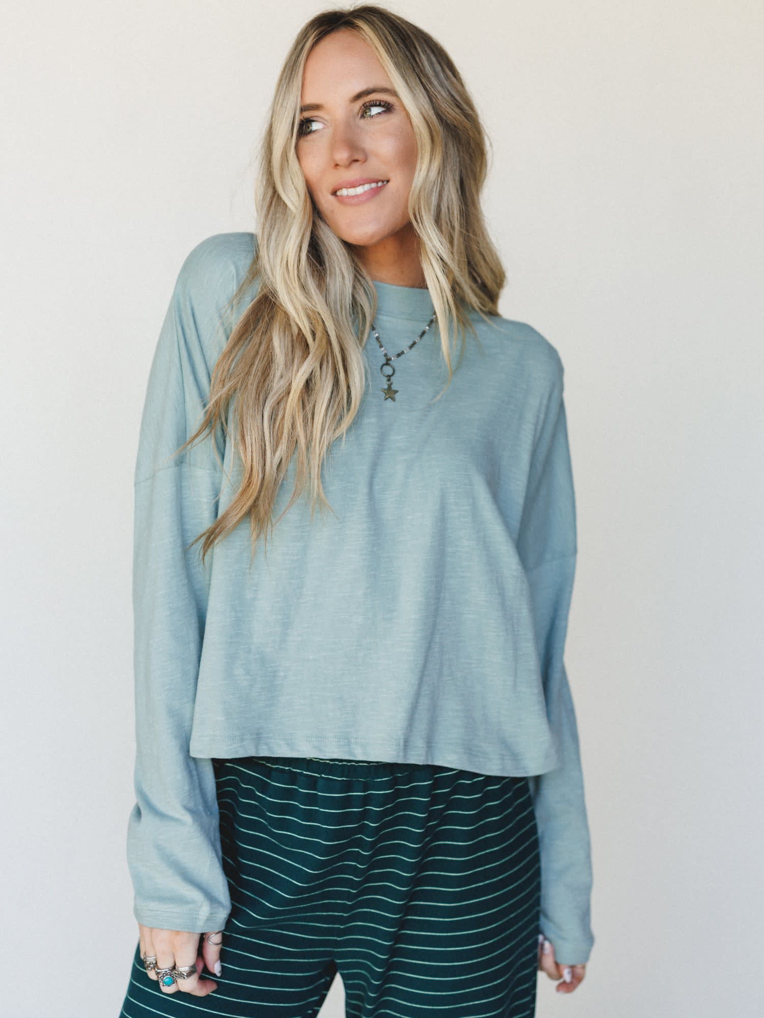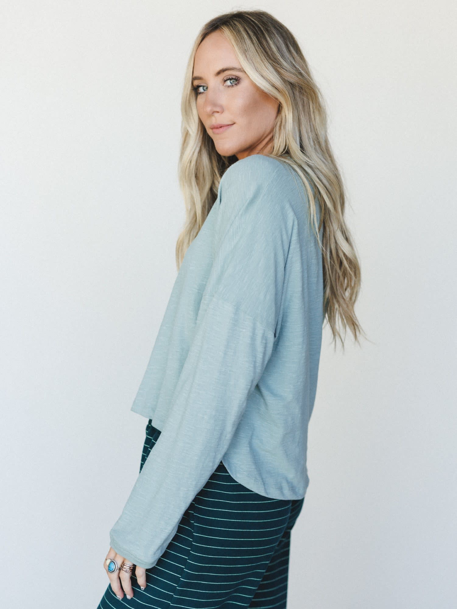 An easy, everyday essential with that effortlessly relaxed feel you’ll keep coming back to. The soft dusty sage tone gives it a calm, neutral vibe that pairs perfectly with everything from lounge sets to denim.