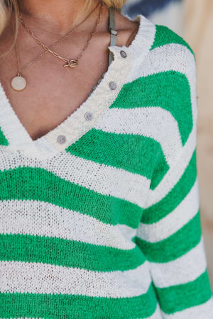 This lightweight Henley style top pairs perfectly with denim shorts and sneakers for a nautical summer look.Β