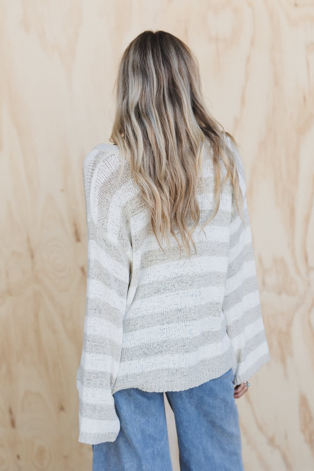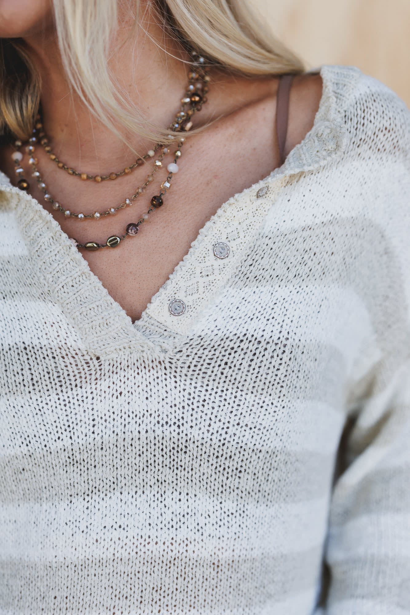 This seaside layer looks amazing with wide leg jeans, a scoop neck top, and sneakers.