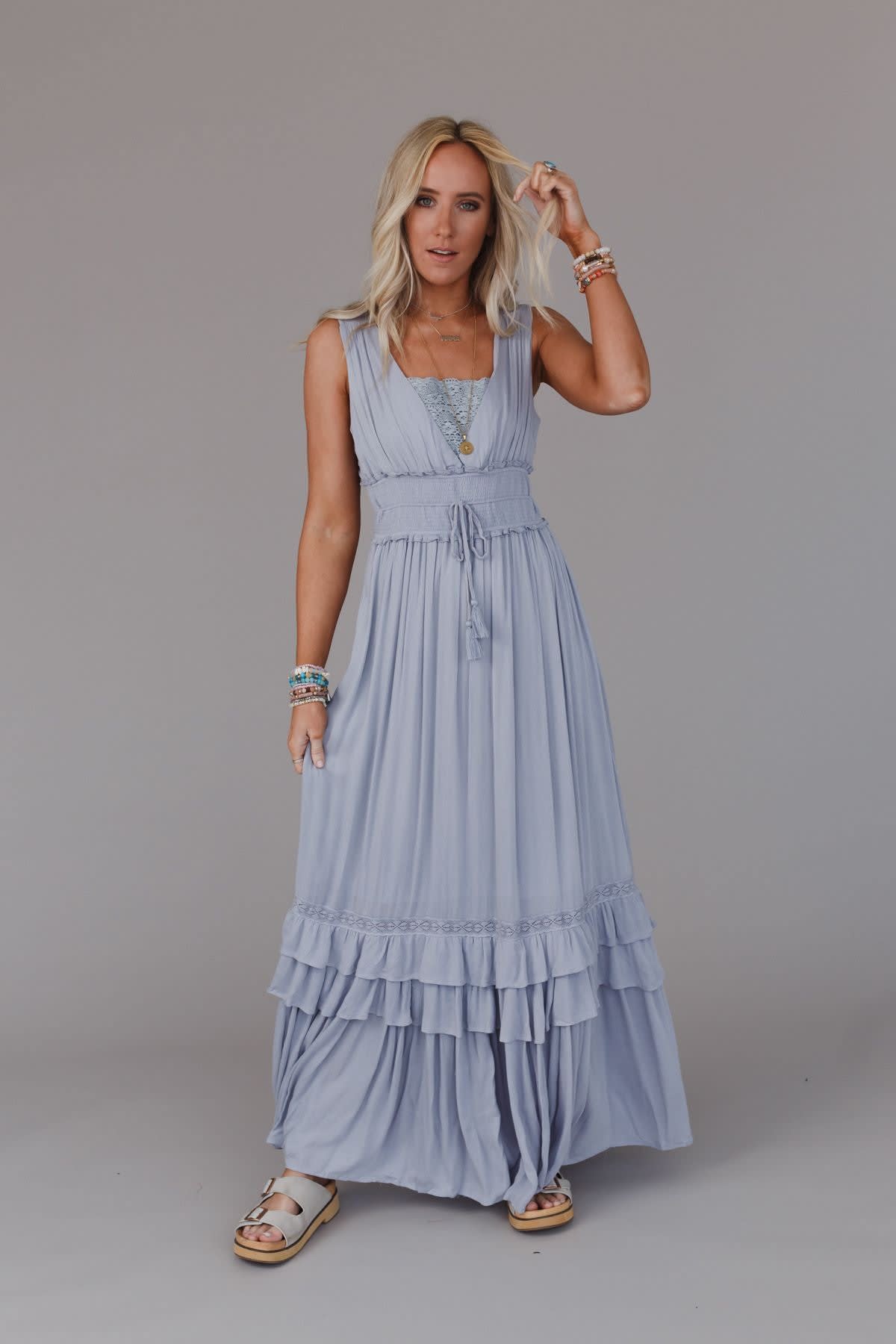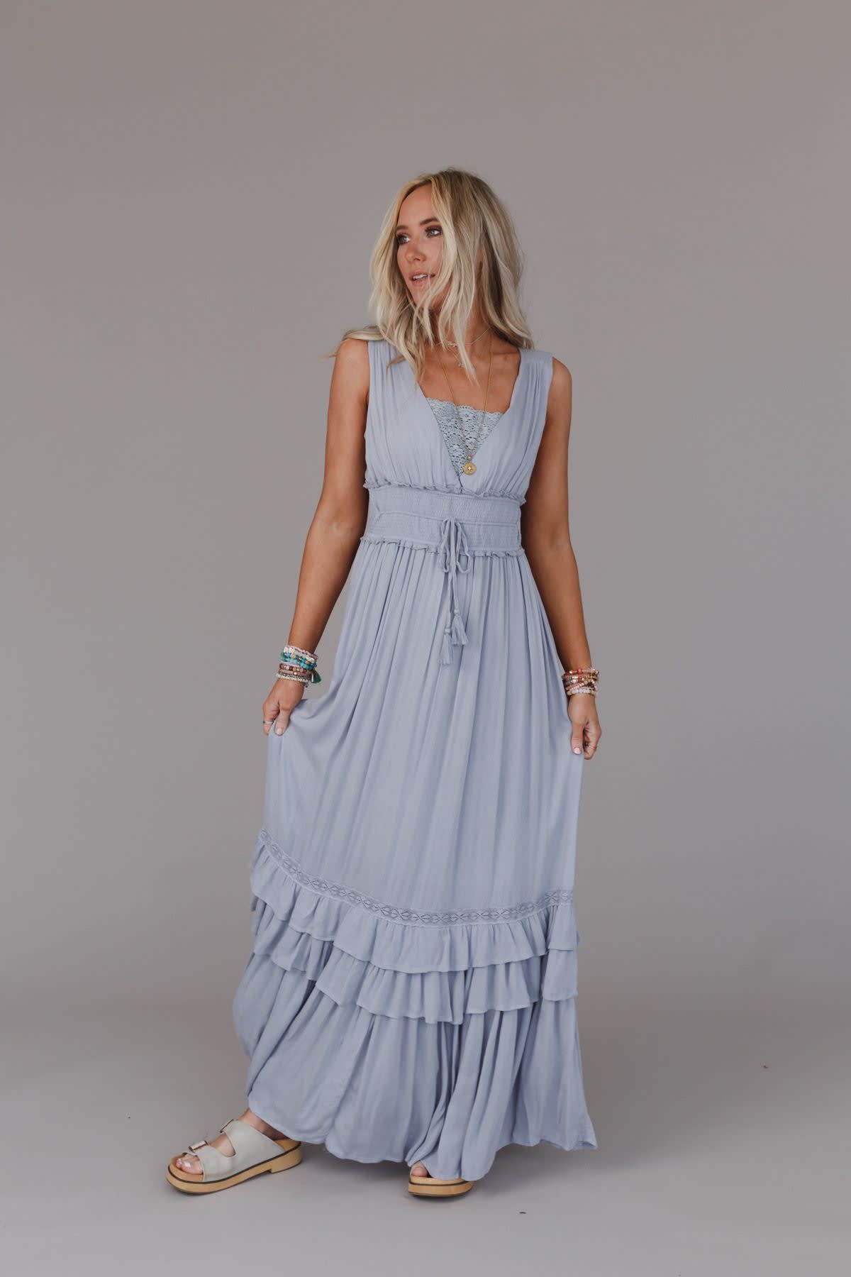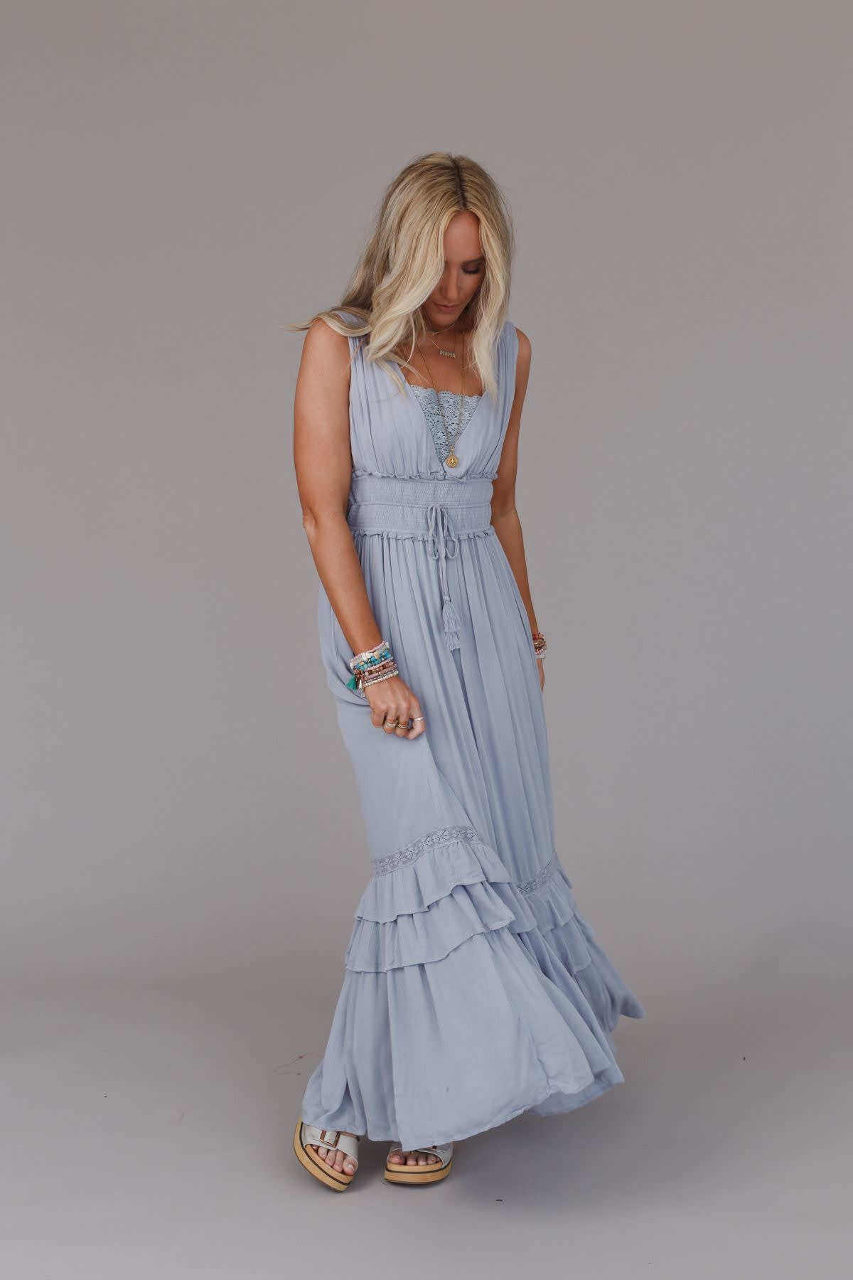 The Santa Maria Tiered Lace Maxi Dress is phenomenal, true must-have piece that no boho closet is complete without!
