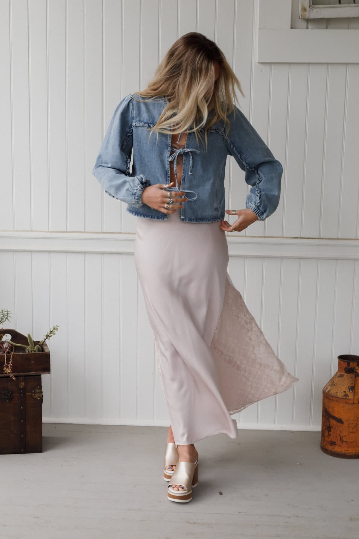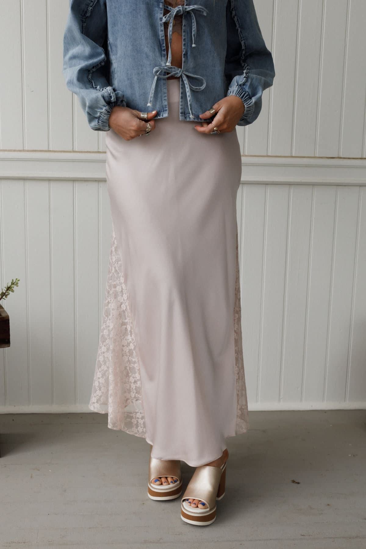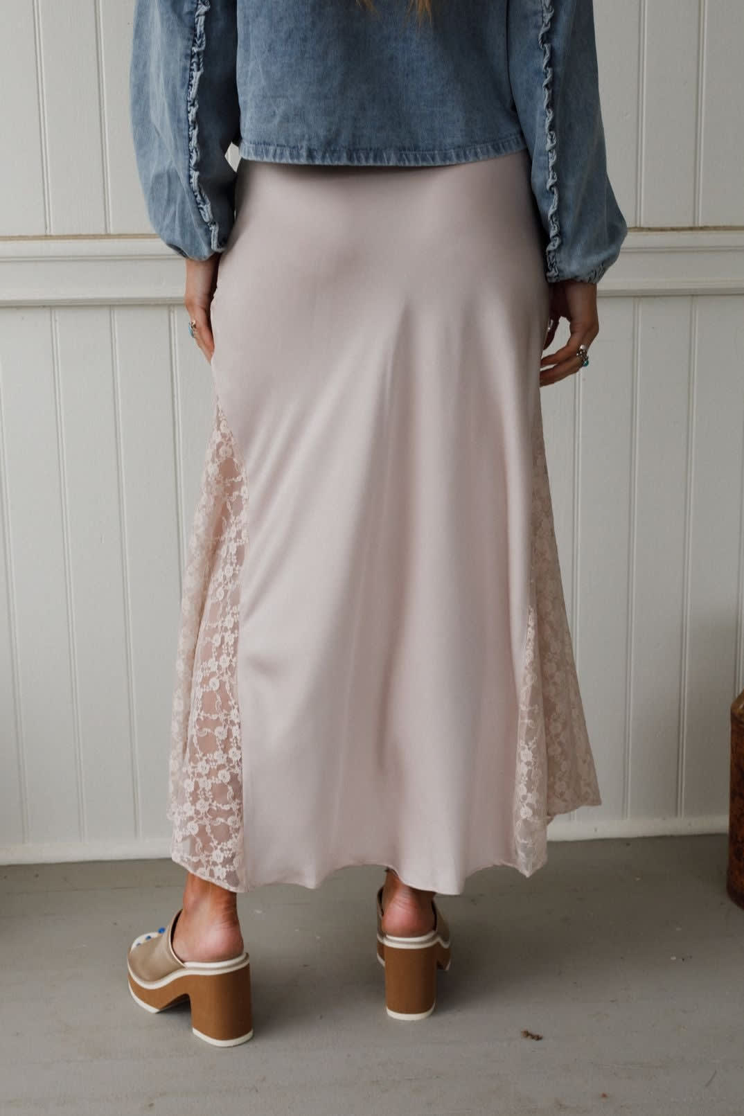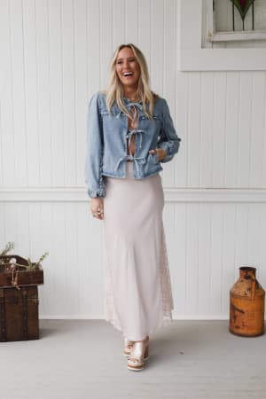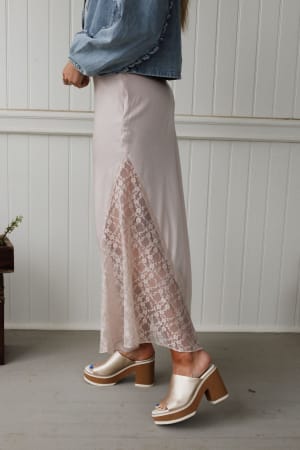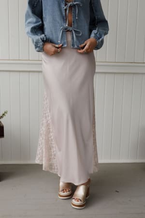 This adorable cream lace skirt will add a romantic accent to your look and pairs perfectly with an oversize sweater.