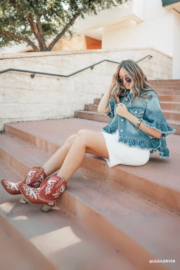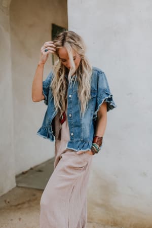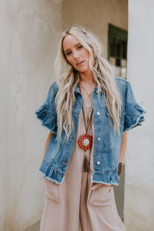 This boho denim jacket pairs perfectly with maxi dresses and sandals.
