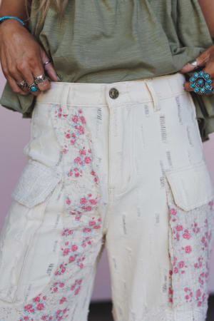 Seaside Bloom Crochet Detail Pants