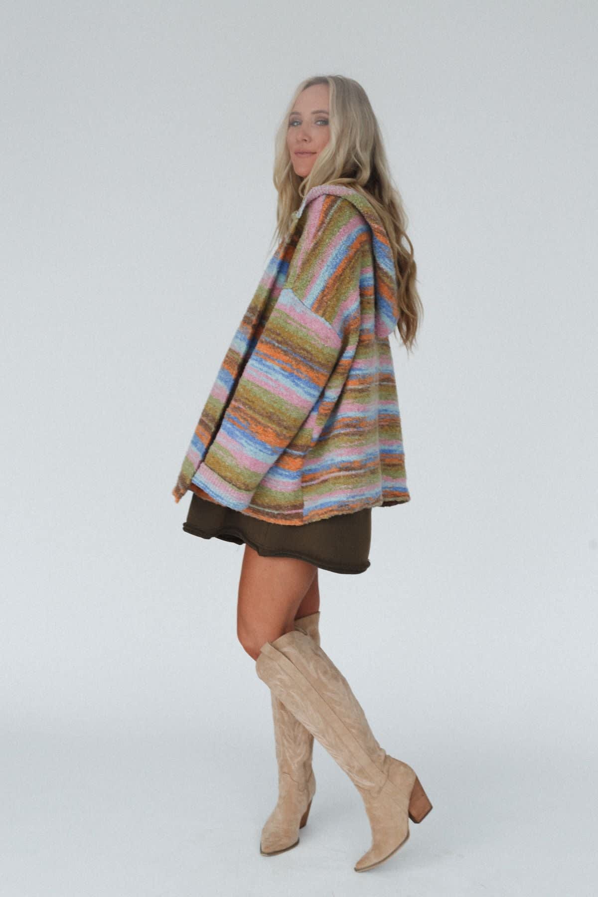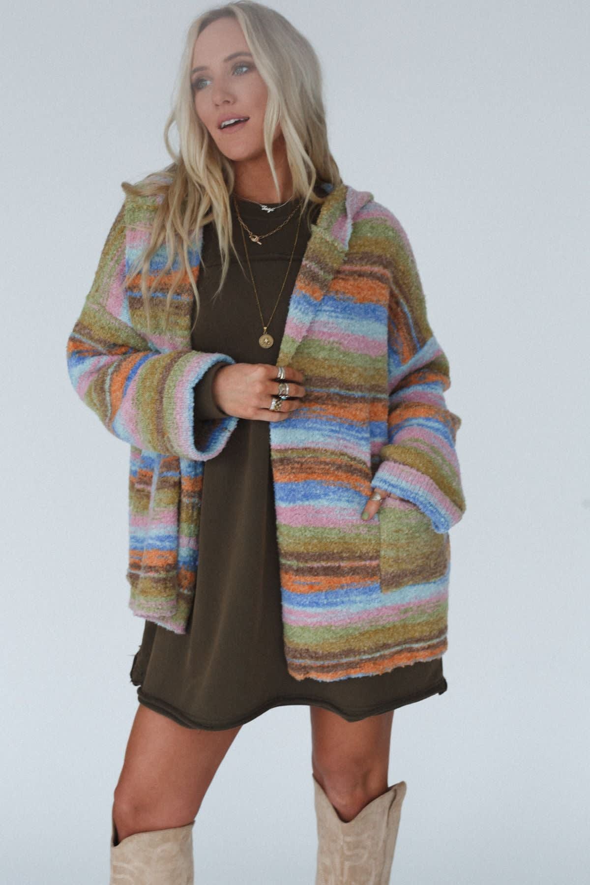 So comfy with an effortless boho silhouette, the Shanae Striped Hoodie Cardigan is a must-have boho essential!