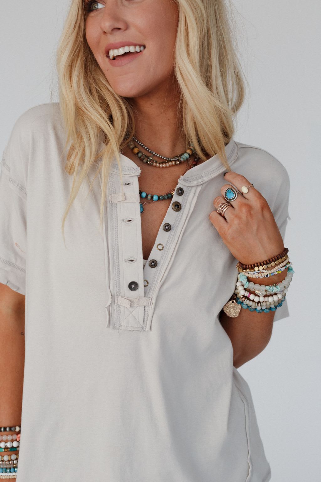 Look no further—we have the perfect tee for you! The Sienna Henley Top is one you'll love from the moment you try it on!