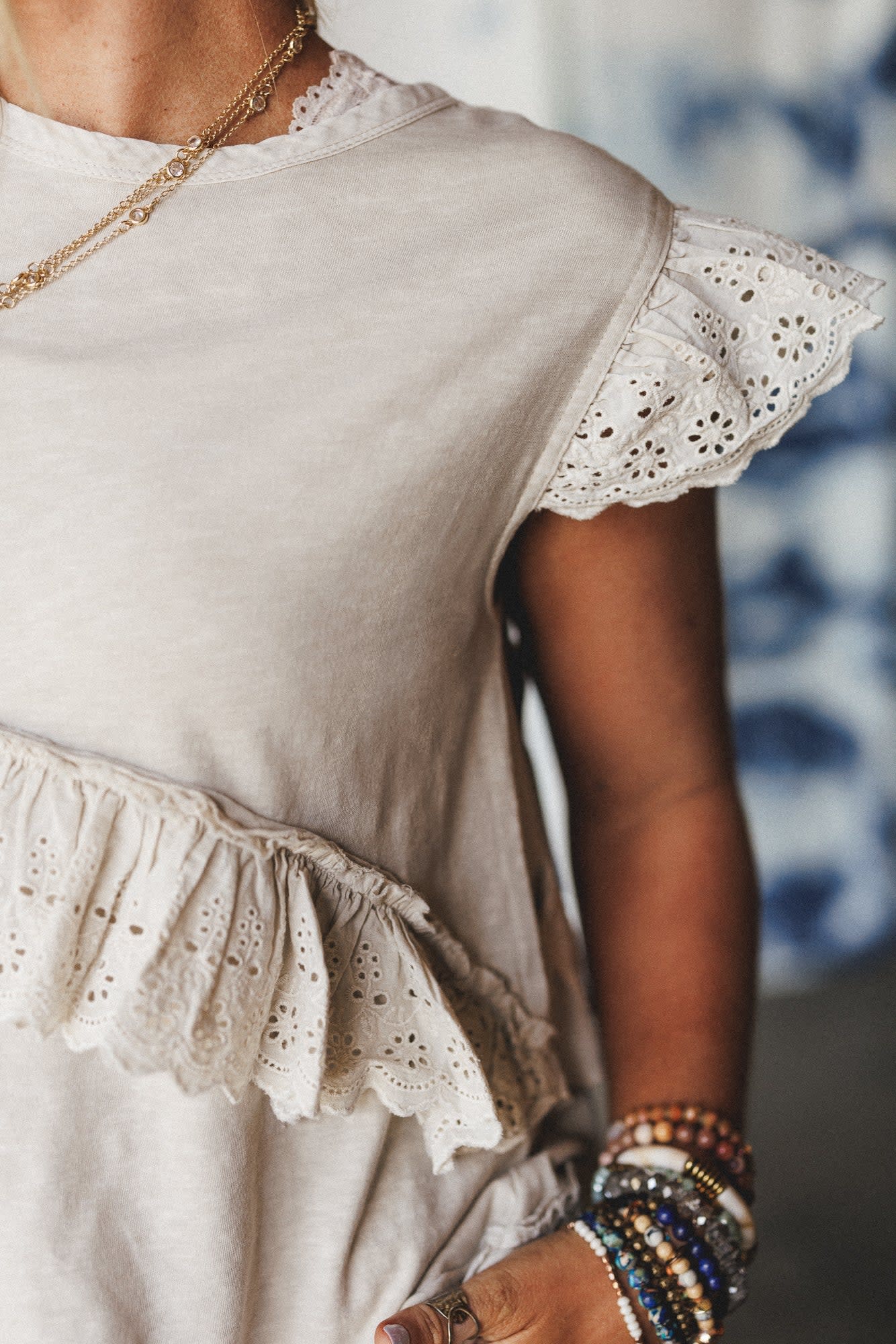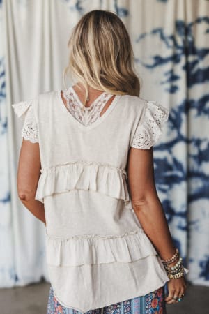 This effortless boho top features delicate ruffles and goes perfectly with your favorite jeans.