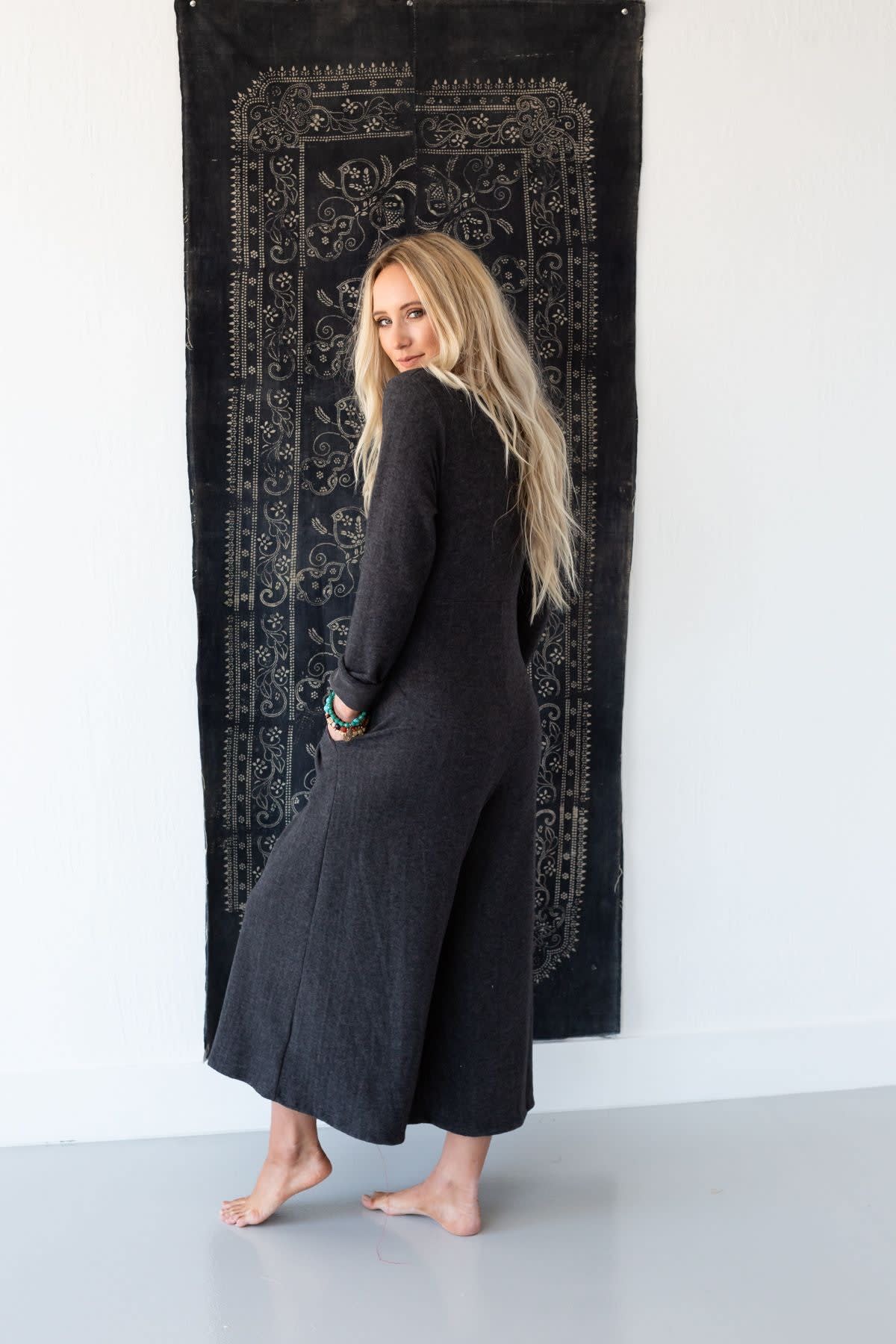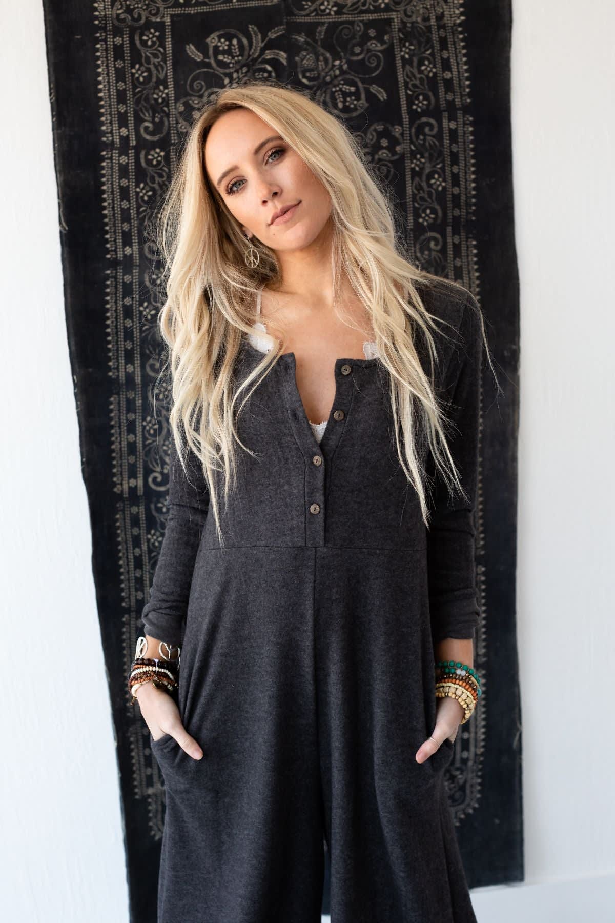 This versatile boho jumpsuit can be easily dressed up with heels and a leather jacket.