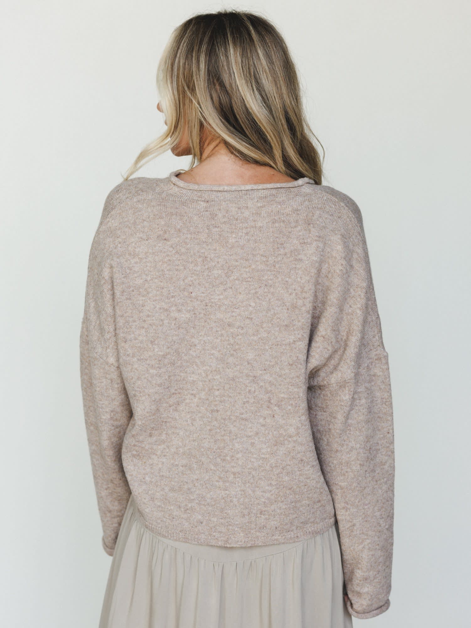 - Oversized, relaxed fit in a beautifully soft oatmeal heathered knit with voluminous balloon sleeves and ribbed cuffs that feel as luxurious as they look.