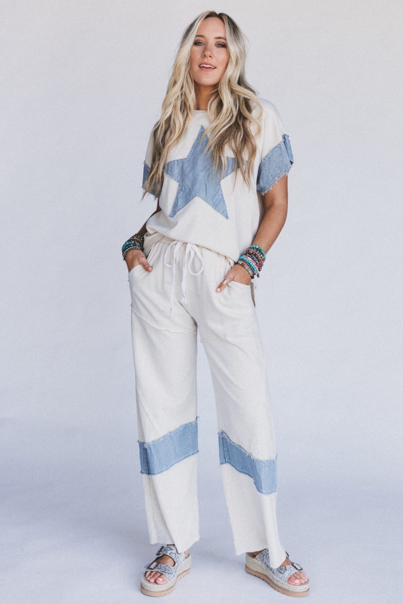 • LARGE: Waist: 30“, Stretched Waist: 38“, Rise: 13“, Inseam: 30“, Length: 40“, Hip: 48“, Flare: 24.5“