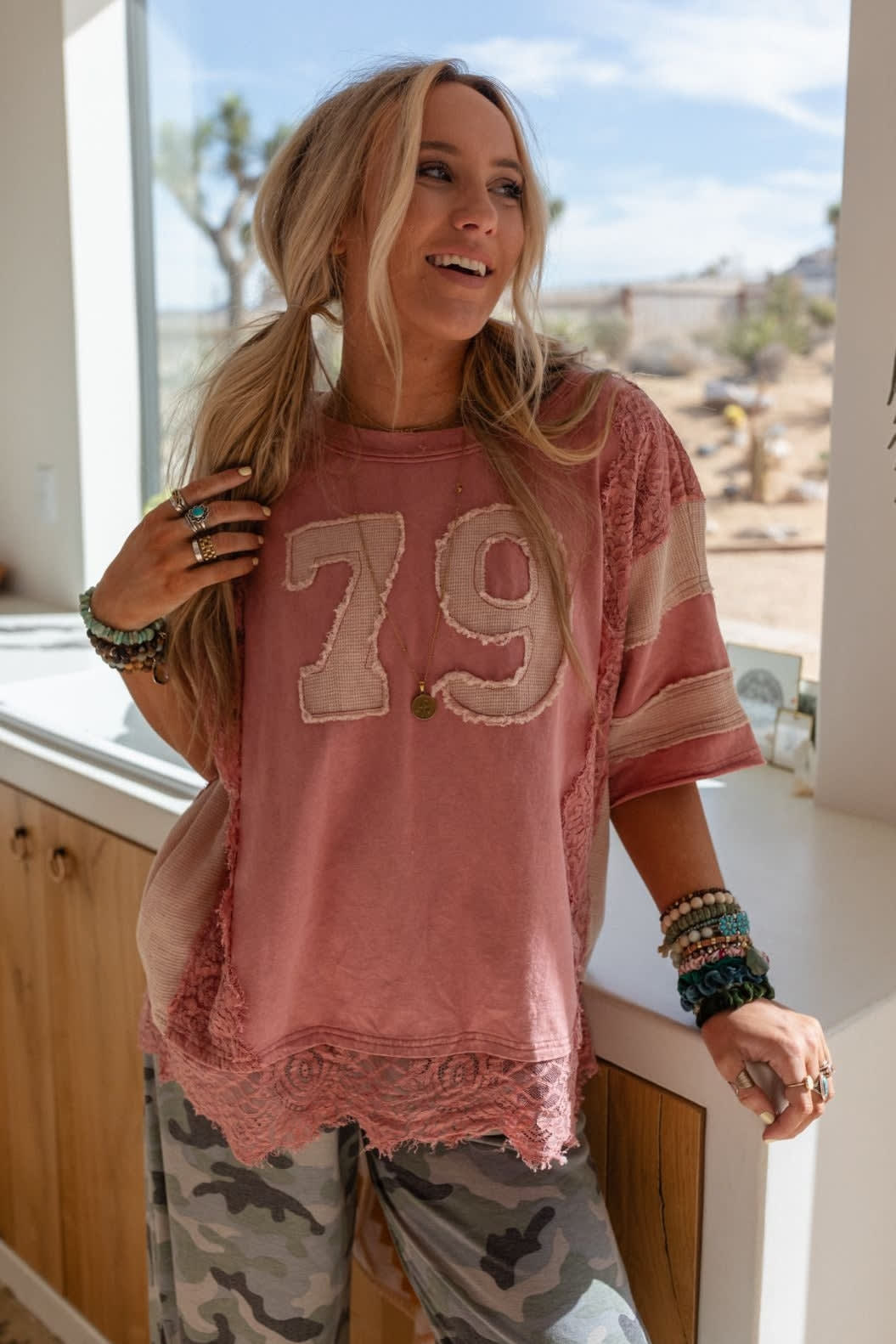 Slumber party like it’s 1979 in this graceful lace top. With a slouchy design, it’s as comfy as it is cute.