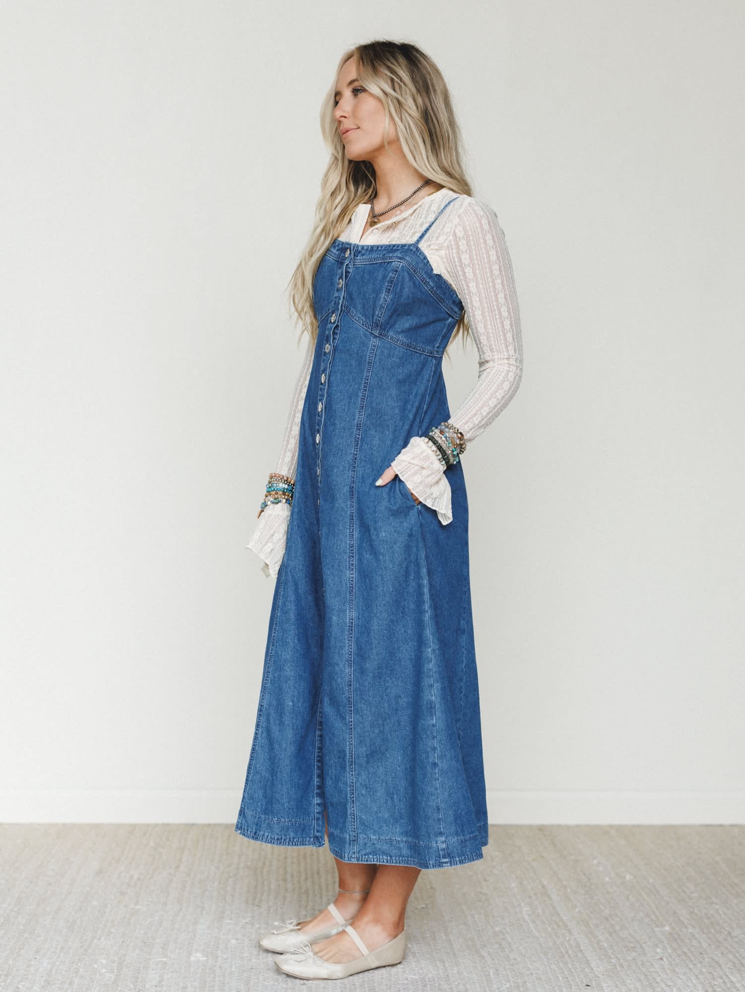 - Small Town Girl Dress gives classic denim a feminine twist with a flattering button front and midi length silhouette