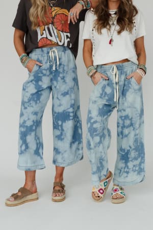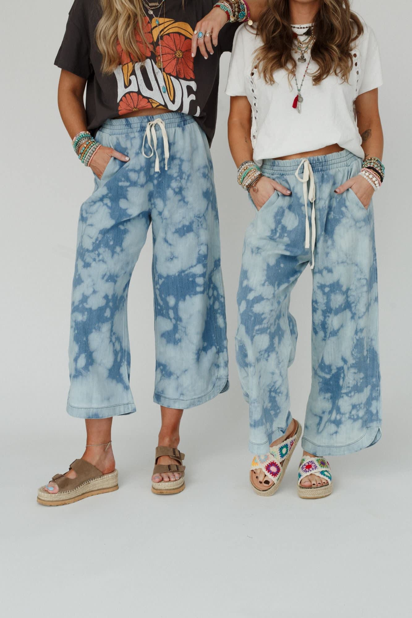 - Comfy bleach dyed denim fabric (Each lot is custom dyed, every pant is unique!)