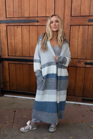 Excited to bring you the So Cozy Oversized Striped Knit Duster from our exclusive collection; The Nest by Three Bird Nest. Check out the rest of the collection here - Inspired by you, created by us.