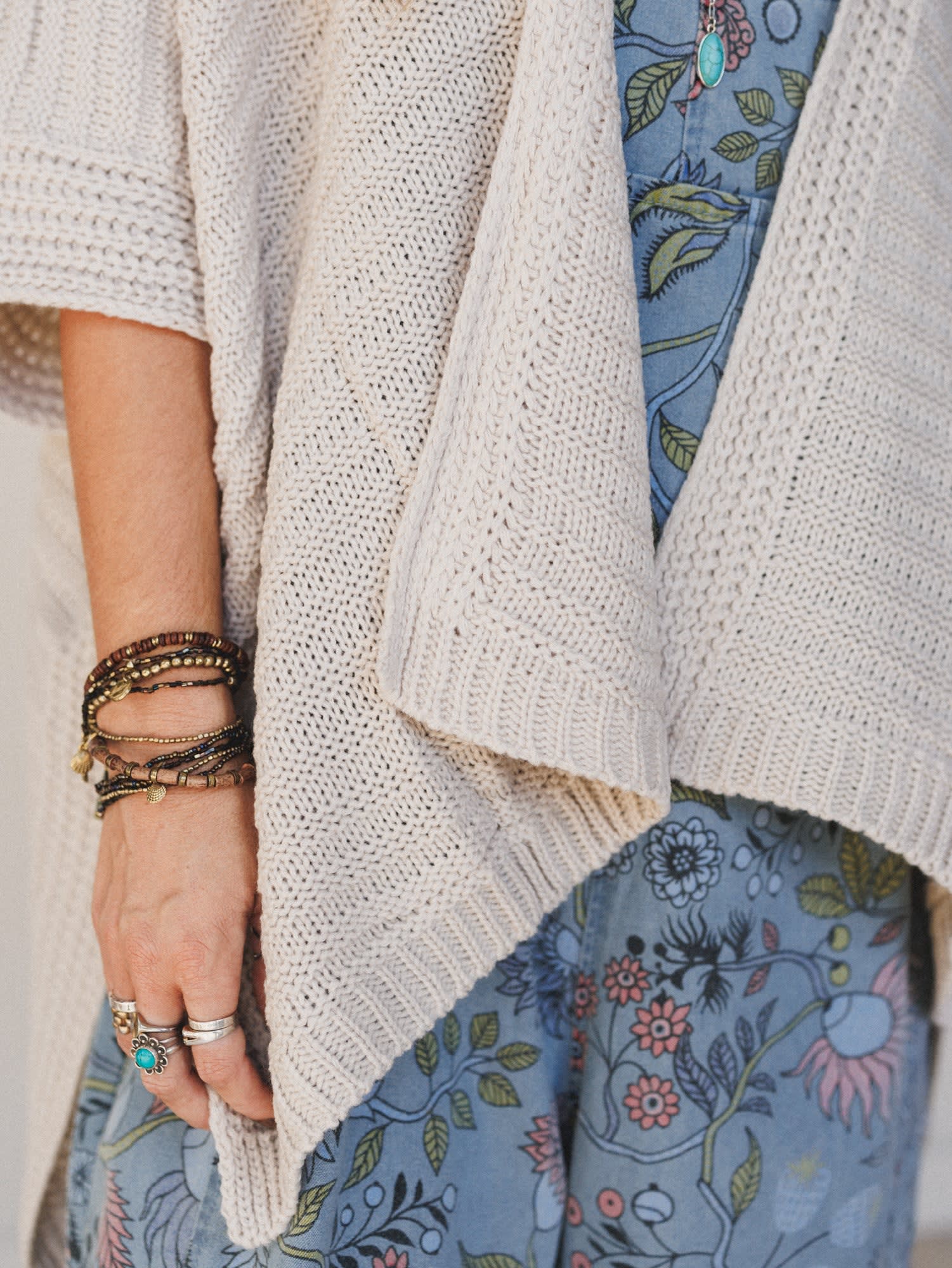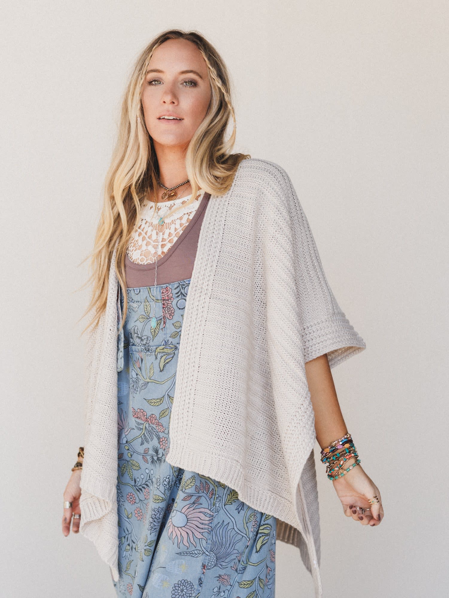 - Layered with the So Deserving Knit Ruana, an open-front neutral knit wrap with a draped fit and cozy feel—perfect for layering over tanks, tees, or even a fitted long sleeve