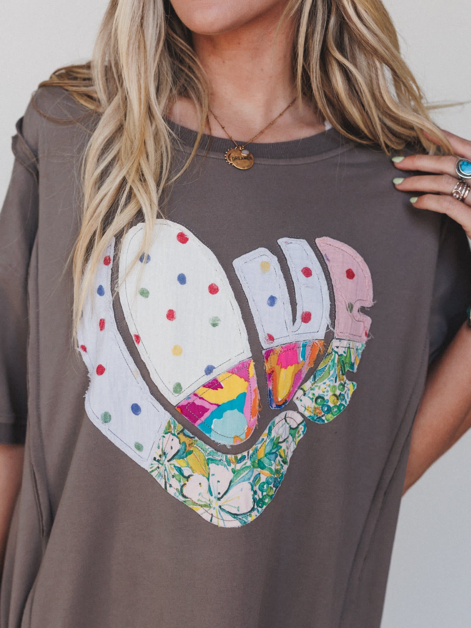 • Features a colorful patchwork-style "LOVE" graphic for that boho, expressive vibe