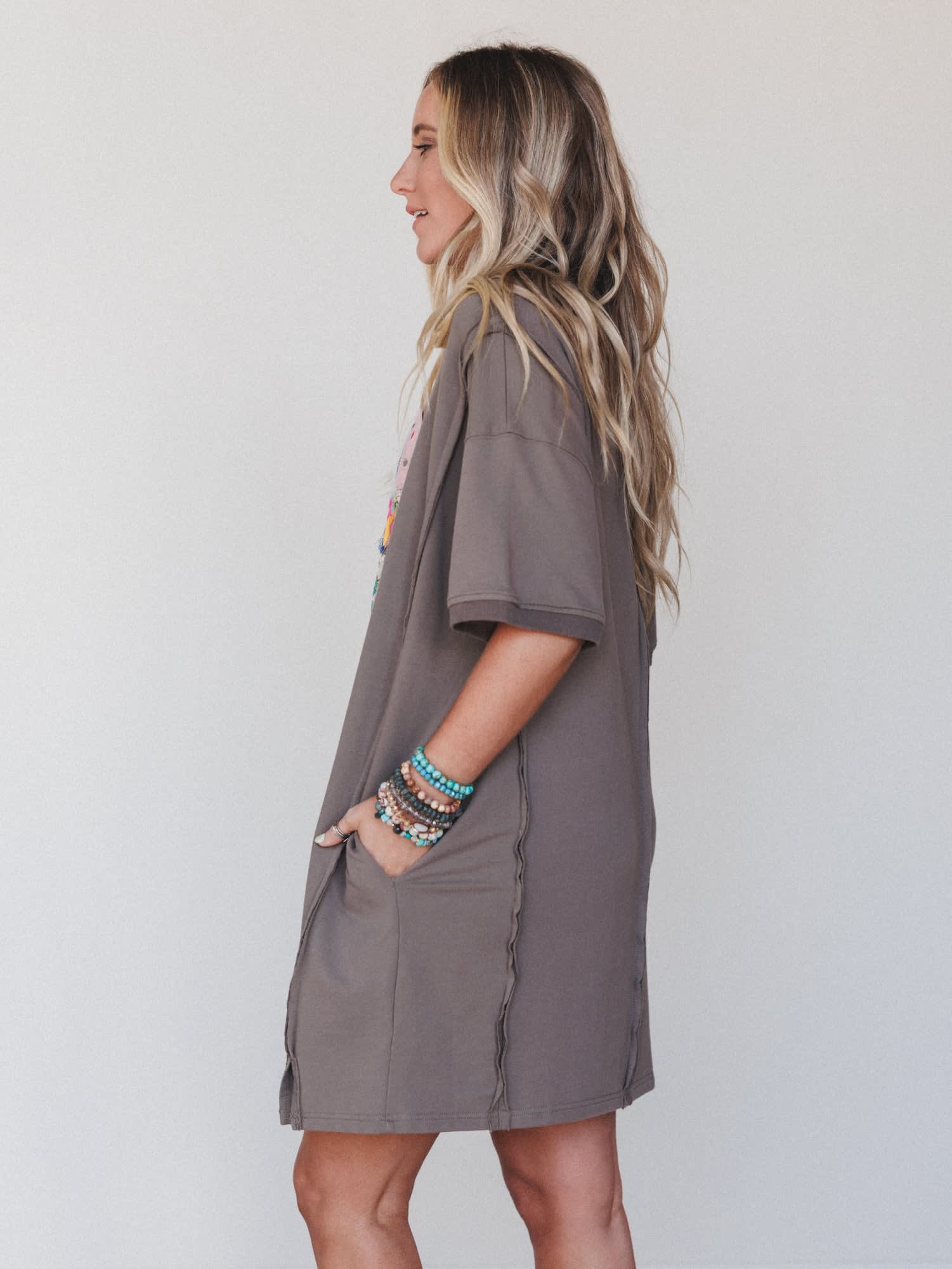 This oversized graphic tee dress is made for laid-back weekends, casual coffee runs, and sunny strolls by the beach.