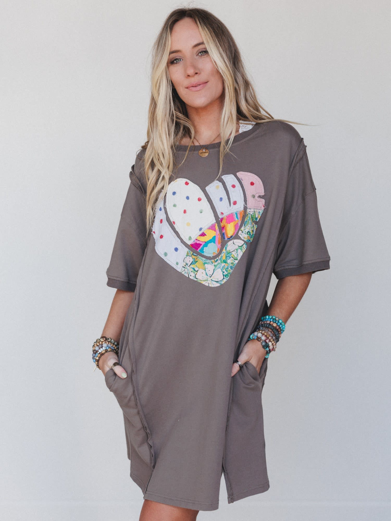 Perfect for free spirits who want comfort without sacrificing style—this boho tee dress is all about heart.